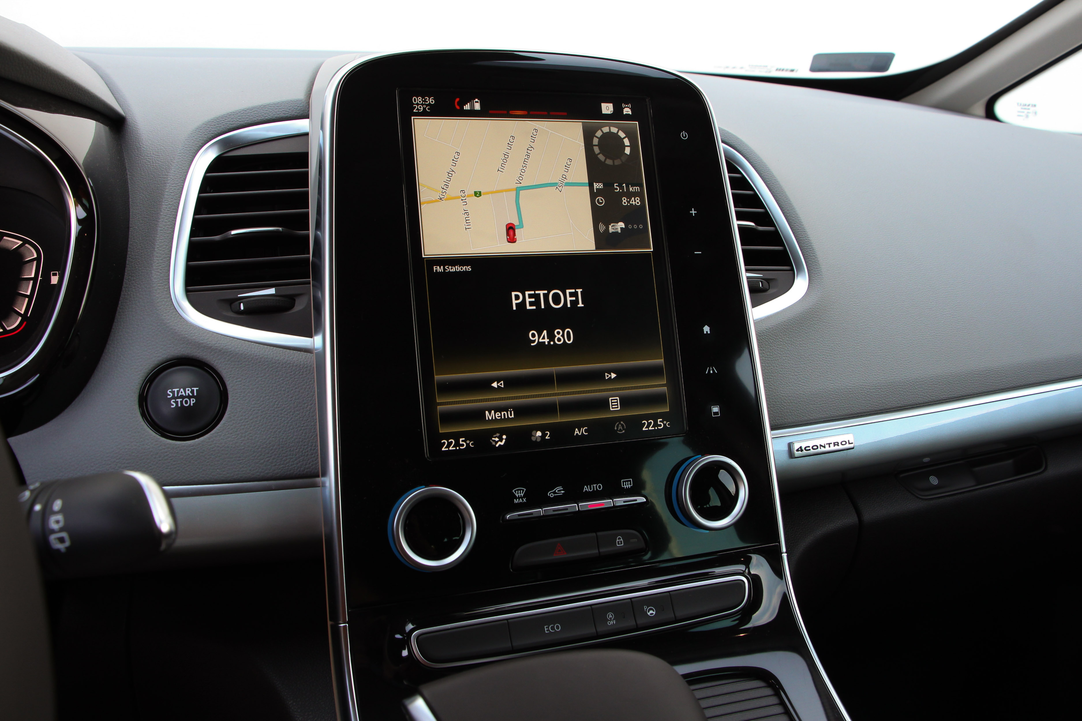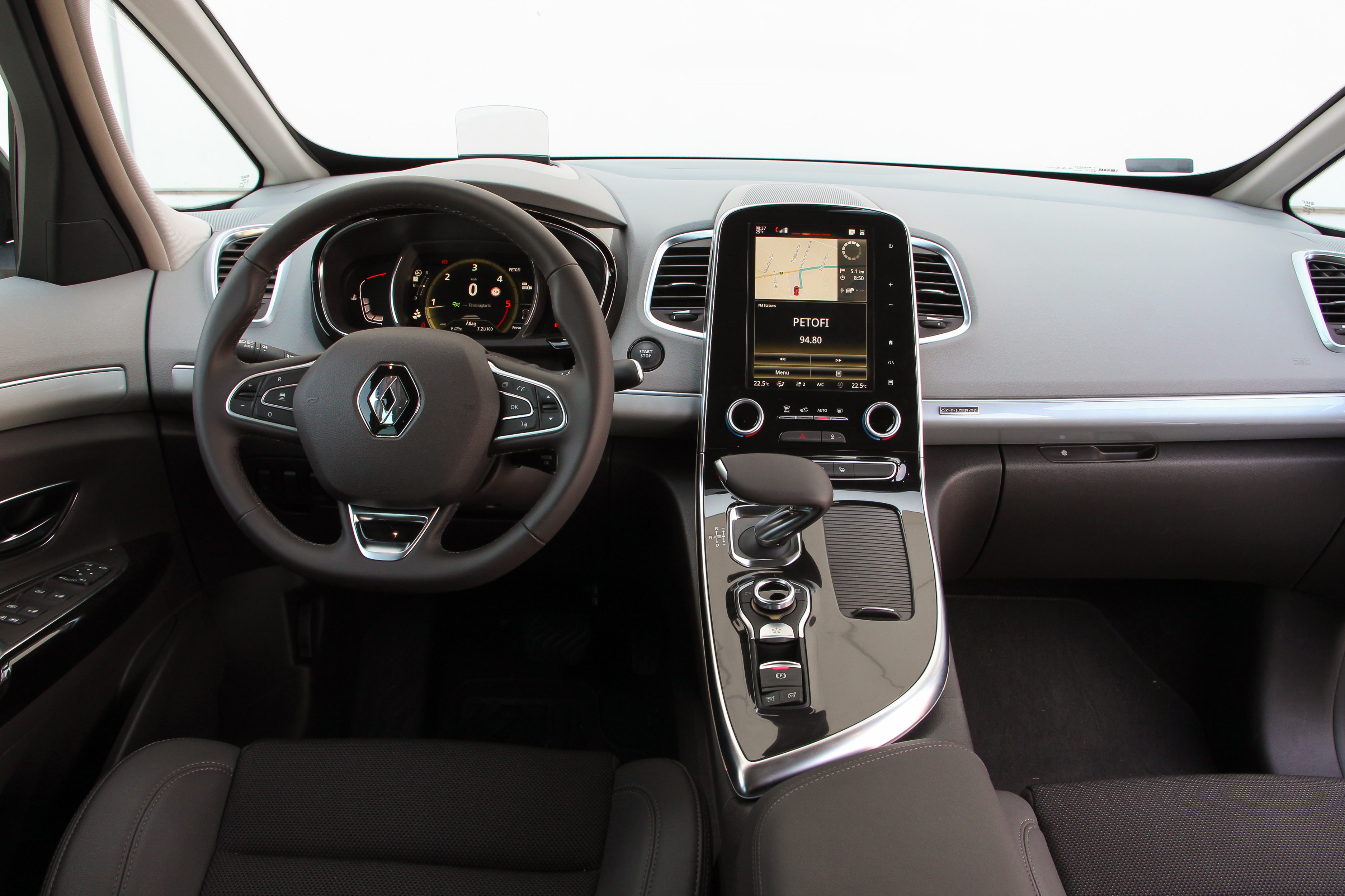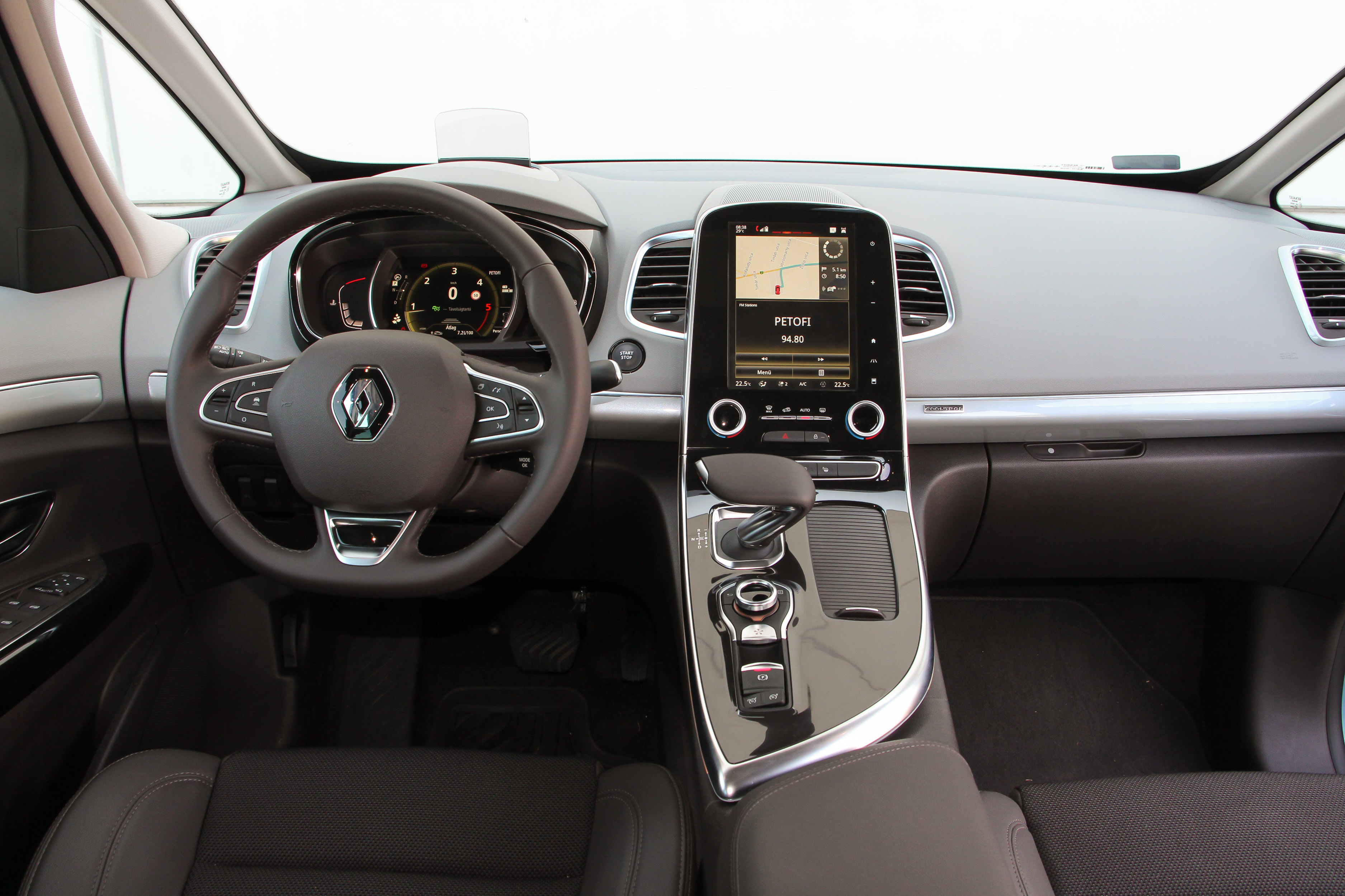 Tér és sok más is van. Ha a korábbi Espace-generációkhoz mérten nem is túlzottan légies a legújabb, ötödik generációs, abszolút értékben annak számít. Alacsonyabb, ugyanakkor nagyobb hasmagasságú lett. Kecsesebb, buszos helyett inkább nyújtott kombis megjelenésű, a gyár persze crossovernek mondja, hiszen annak van most divatja. A kilátás továbbra is jó, az utastéri anyaghasználat prémiumvilágba kacsintó. A megszokást igénylő, de megszokható érintőképernyős középkonzol szintúgy. Jól szolgál a sebességmérő mellett a navigációt is a sofőr előtti plexilapra vetítő head-up display és jól szól az itt 200 000 forintos extraként mért Bose hifi is. Igen ám, de annak mélynyomója miatt itt sem lehet a csomagtér padlójába tenni a fedőrolót. Amúgy maga a csomagtér méretes, még hét ülés mögött is használható űrtartalmú, 46 centi hosszú, 247 literes. Öt üléssel 719, csak az elülsőkkel 2035 liter tölthető meg. A bő 2 méter hosszú, igen széles térben nagyon sok minden szállítható, az ülések síkba hajtása gombnyomásra megy.