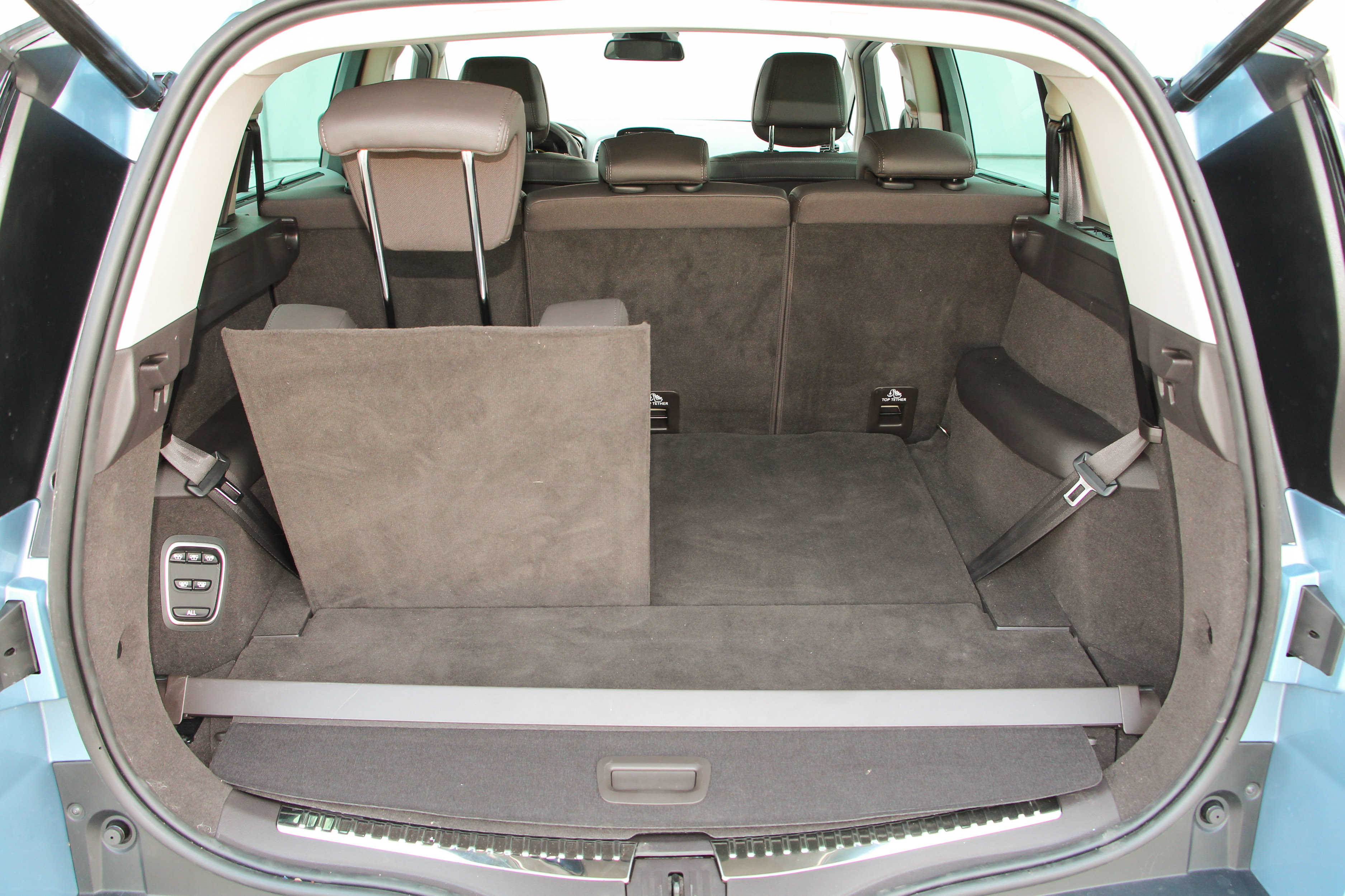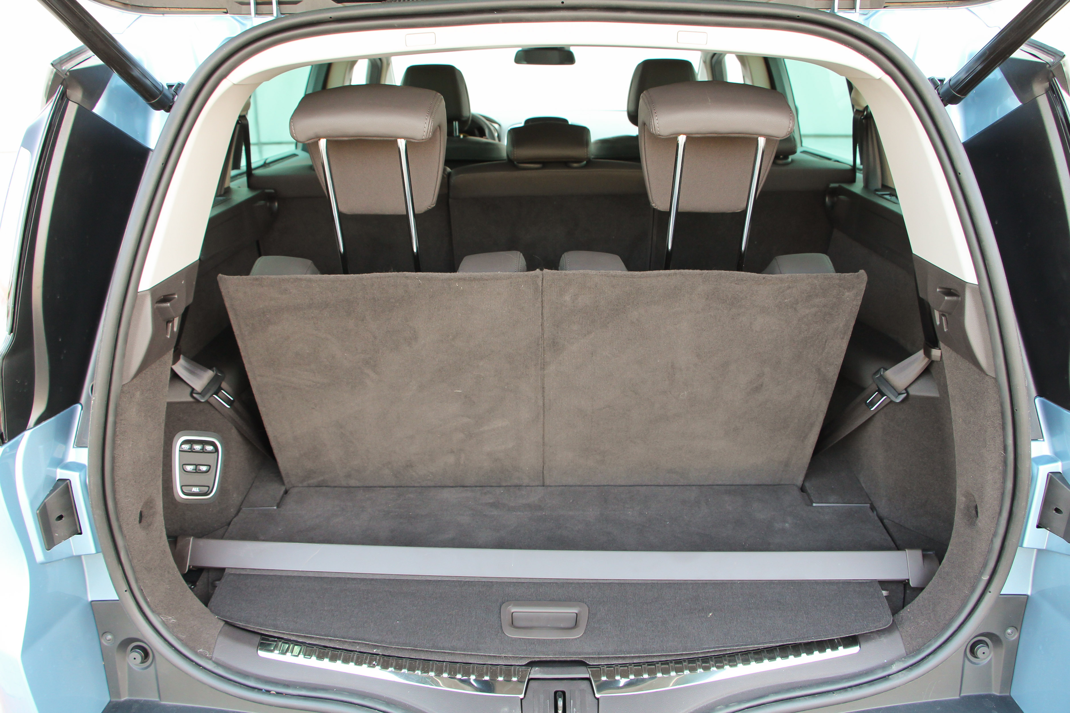 Még hét ülés mögött is használható méretű, öt üléssel nagyon nagy, csak az elsőkkel óriási a csomagtér. A fedőroló csak Bose hifi esetén nem tehető a padlóba