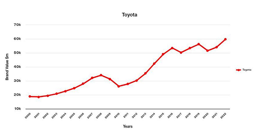 Alighanem ez a paradigmaváltás is hozzájárult ahhoz, hogy az átalakuló gazdaságban nem csak tartani, de erősíteni is tudta pozícióját a Toyota, amely 2004 óta megingathatatlanul vezeti az autóipari szereplők márkaérték-rangsorát. A vállalat mostanra talpra állt a 2020-as lendületvesztést követően, és nem csak a márkaérték terén tört soha nem tapasztalt magasságokba – ez a 2022-es elemzés szerint immár eléri az 59,76 milliárd dollárt (23,45 billió Ft) –, de a rangsorban is minden eddiginél előrébb: az összesített hatodik helyen végzett. [BANNER type="2"]