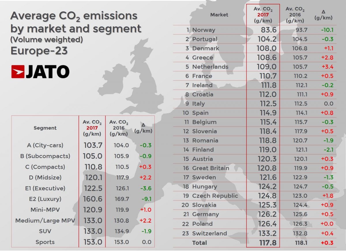 A legszerényebb emissziójú autókat Norvégiában vásárolják, javult Portugália, a szegmensek között pedig a mind népszerűbb szabadidőautók továbbra sem szerény átlaga