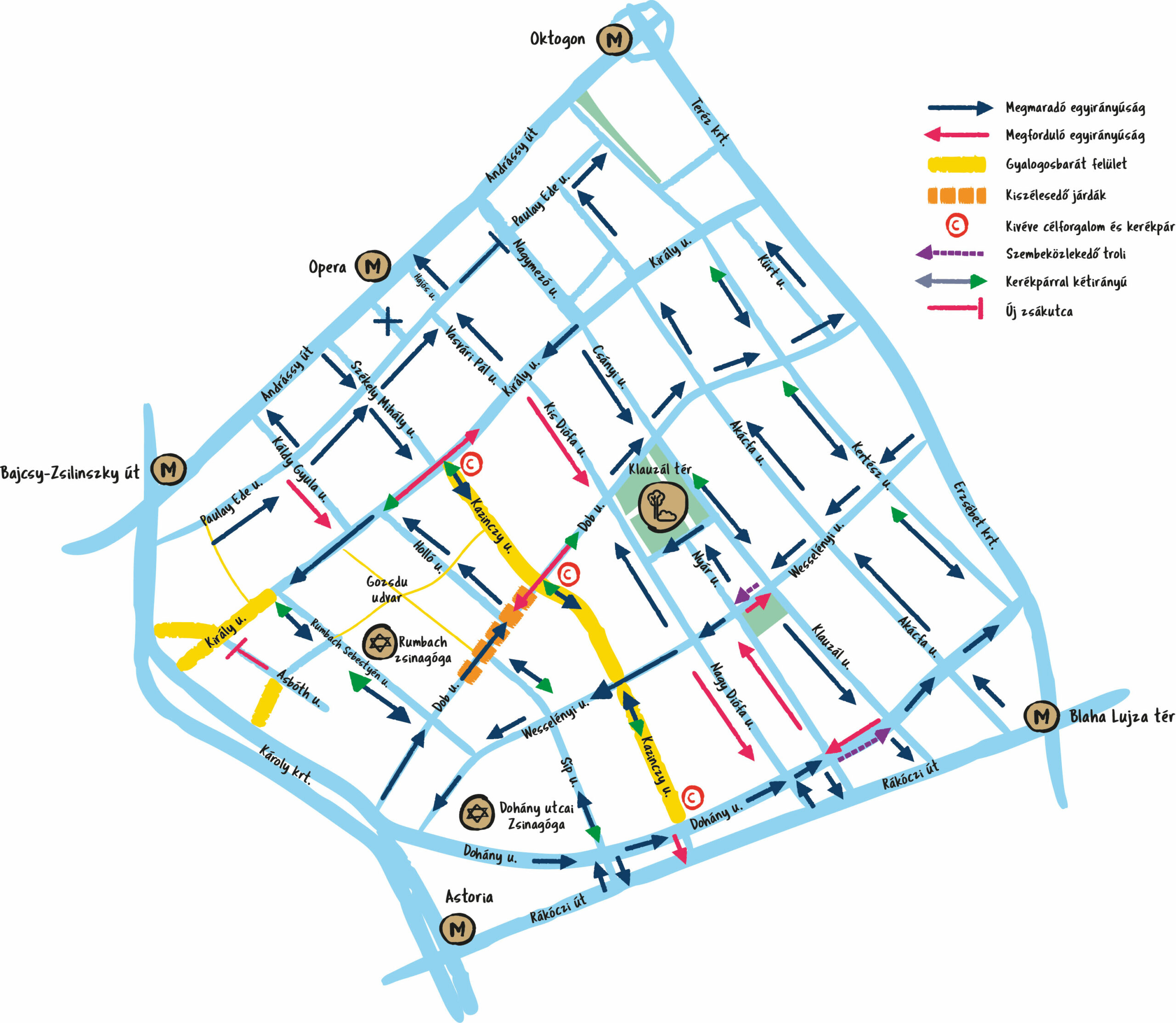 • Kazinczy utca: a Király utca és a Dohány utca között (csak a célforgalom hajthat be)