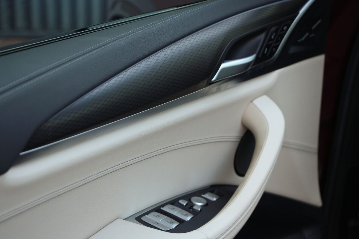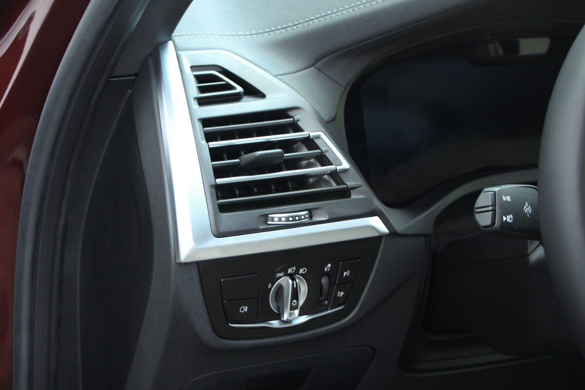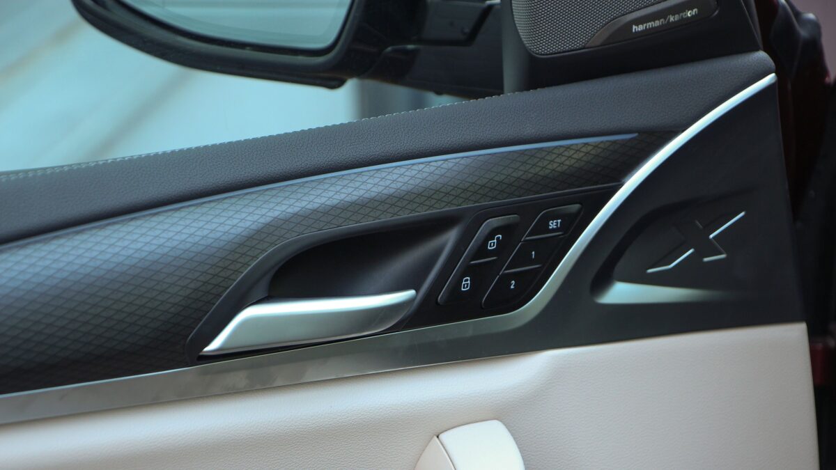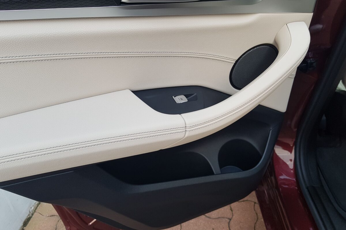 Ugyanúgy, ahogy az X3 és az X4 esetén, itt is a fényszórók változása a legfeltűnőbb, köztük is leginkább a hátsó lámpáké. De átrajzolták kicsit a lökhárítókat is. Megmaradtak a vesék, igaz nőttek is minimálisan, illetve megpróbálták valódi légbeömlőnek álcázni őket a mintázatukkal. Ezt mindig is jó irányvonalnak tartottam, mert így sokkal jobban hasonlít a megszokottra, ezáltal szerintem emészthetőbb, kívánatosabb a forma. Elölről nézve egyébként szélesebbnek is hat az autó a 10 milliméterrel elvékonyított fényszórókkal, és ami még fontosabb, jóval sportosabb az összkép, ami fontos, ha már a BMW a saját maga alkotta kategórianévvel is ezt akarja hangsúlyozni. Hátul a kipufogónyílásokat és diffúzort egyszerre imitáló díszbetét most nem kék, de az nem is illene a hivatalosan vörös, bár fényviszonyoktól függően olykor bordónak tűnő fényezéshez. Természetesen új könnyűfém felnik is megjelentek, a tesztautón a villany-BMW modellekre jellemző, kéttónusú fényezéssel ellátott, 20 colos darabok koronázták meg a dizájnt.