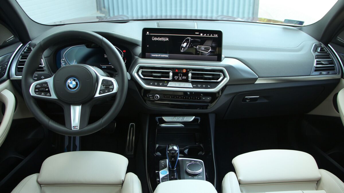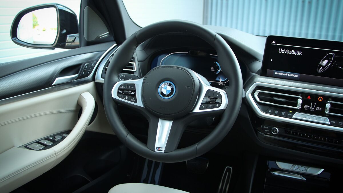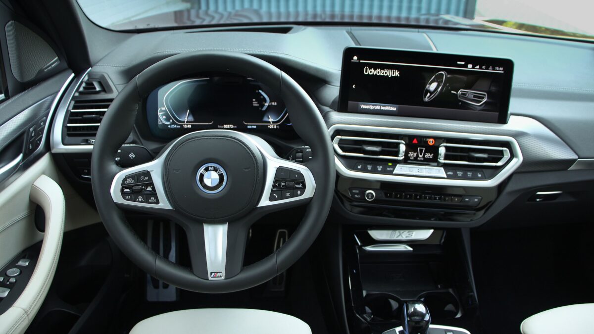 A külsőhöz hasonlóan az utastérhez is csak óvatosan nyúltak, az ergonómiát javítandó egy kicsit átalakult a váltókapcsoló környéke, megmaradt persze az iDrive tekerőgombja, amivel továbbra is rendkívül egyszerű az infotainment sokrétű menüjében barangolni. Természetesen a megnövekedett, immár 12,3 colos érintőképernyőn is lehet matatni, de a tekerőgomb használatával menet közben kevésbé kell levenni a szemünket az útról. Kimondottan jól passzol a fehér Vernasca bőrkárpit a külső színhez, bár tény, hogy ez kicsit mindig kényesebb a sötét árnyalatoknál. Az iX3 egyébként alapból M Sport csomagos, így nem hiányzik belőle a háromküllős sportkormány, illetve elöl a sportülések sem, amelyek rendkívül kényelmesek. Emellett a hátsó ülések párnázottsága is kiváló, öröm utazni itt is, a csomagtér 510 literes űrmérete pedig magáért beszél, ráadásul a töltőkábeleknek is jut külön hely a padló alatt, hogy ne rondítsanak bele a hasznos térbe. A BMW-től megszokott ízlésesség itatja át az utastér minden porcikáját, persze a lehetőségek tárháza igencsak széles, könnyű az egyedi ízlések szerint szabni a beltér hangulatát.