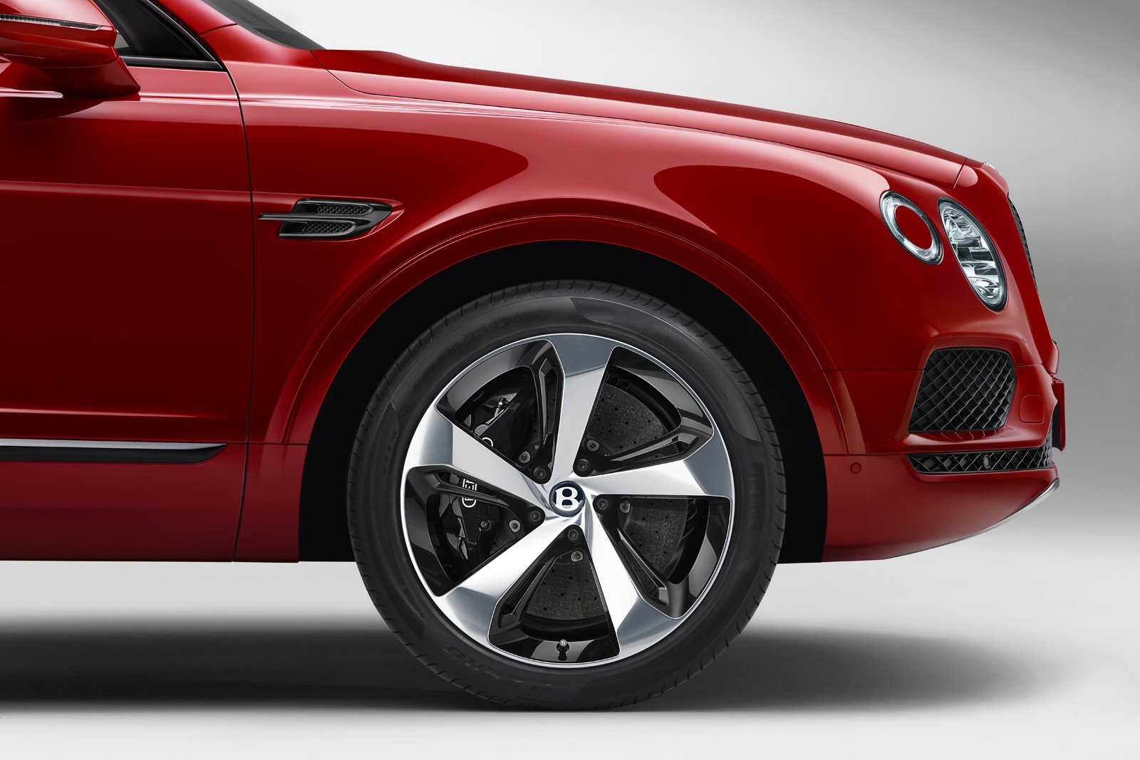 A Bentayga kínálatába újabb színek is érkeztek, nem mintha eddig nem fényeztethették volna szinte bármilyen színűre a megrendelők. Új belső anyagok is érkeztek ám a legfontosabb, hogy a 2,5 tonnás súlyt meg tudja fogni valahogyan 290 km/h-ról is, szóval a Bentley piacra dobta az eddigi legnagyobb, sorozatgyártású autón kapható féktárcsákat. 440 mm átmérőjükkel önmagukban nagyobbak, mint a legtöbb autó kereke, a karbon-kerámia tárcsákra pedig elöl észbontó, de tárcsánként tíz dugattyú harap.