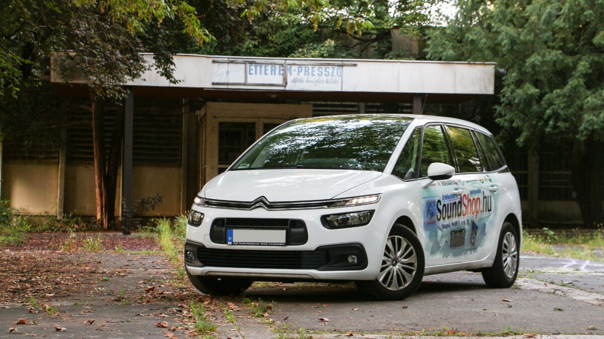 A fizetett hirdetés tárgya most nem maga az autó, hanem az oldalán található SoundShop.hu matrica: a Spacetourerről a jót és a rosszat is leírjuk, hiszen ez a használtteszt lényege