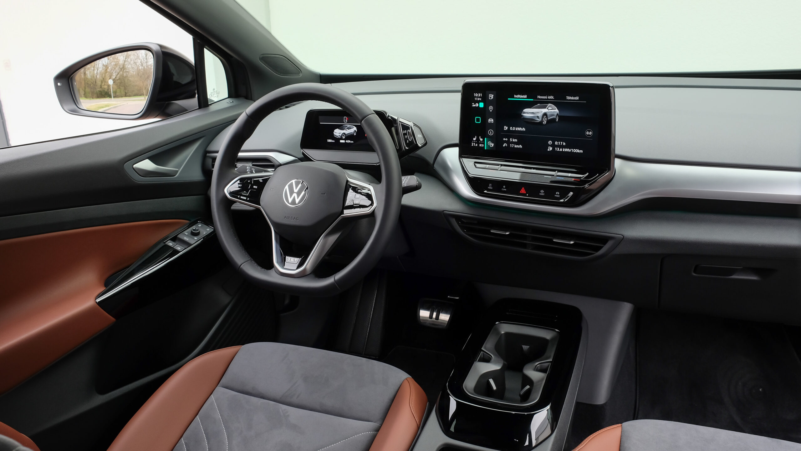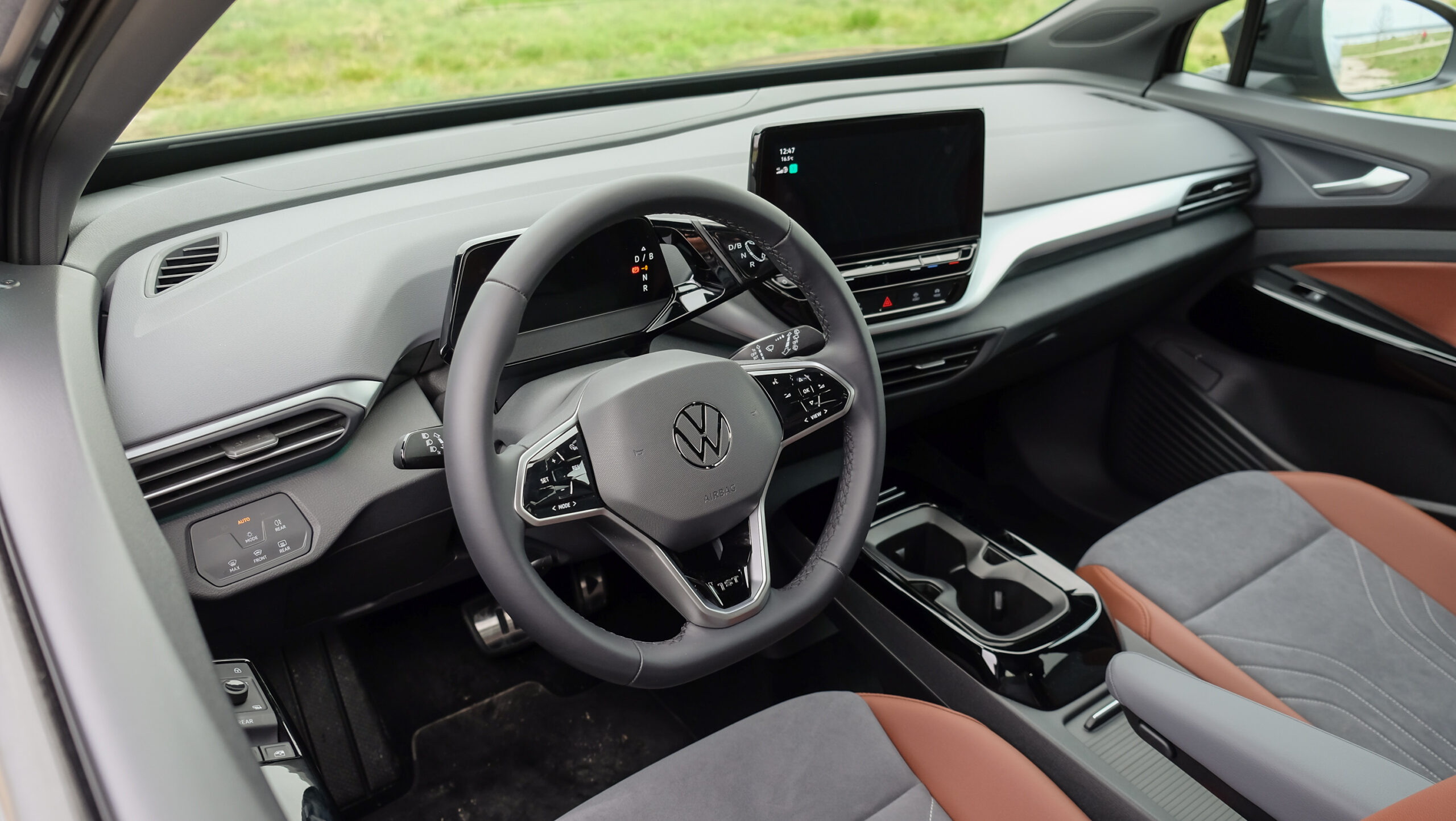 A szürke-barna beltér sokkalta igényesebbnek hat, mint az ID.3-ban tapasztalt, a formák persze ismerősek