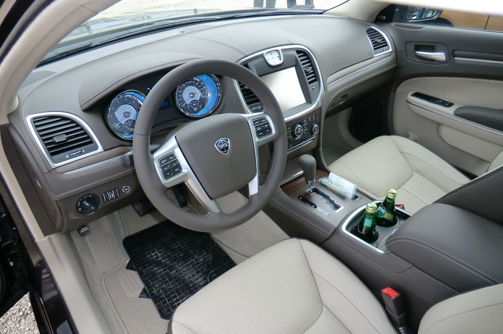 Míg a karosszéria csak részleteivel különbözik a Chrysler 300-asétól, a Thema utastere kellően olaszos. Főként igaz lehet ez a próbált Executive-ra, a bőrbe varrt műszerfal, az ülések és a berendezés általában gusztusos. A műanyagok nem annyira finomak, mint a német konkurensekben, de nem is annyira hitványak, mint amilyeneket az amerikai autóktól megszoktunk. Nem akarjuk a kelleténél jobban összezavarni olvasóinkat - bár lehet, hogy sikerül -, az olasz márka amerikai nagyautója leginkább koreai hatást kelt. Ez pedig nem más, mint dicséret akar lenni, hiszen korrekt árért korrekt minőséget kapunk, de azzal tisztában kell lenni, hogy nem a legjobbat.
