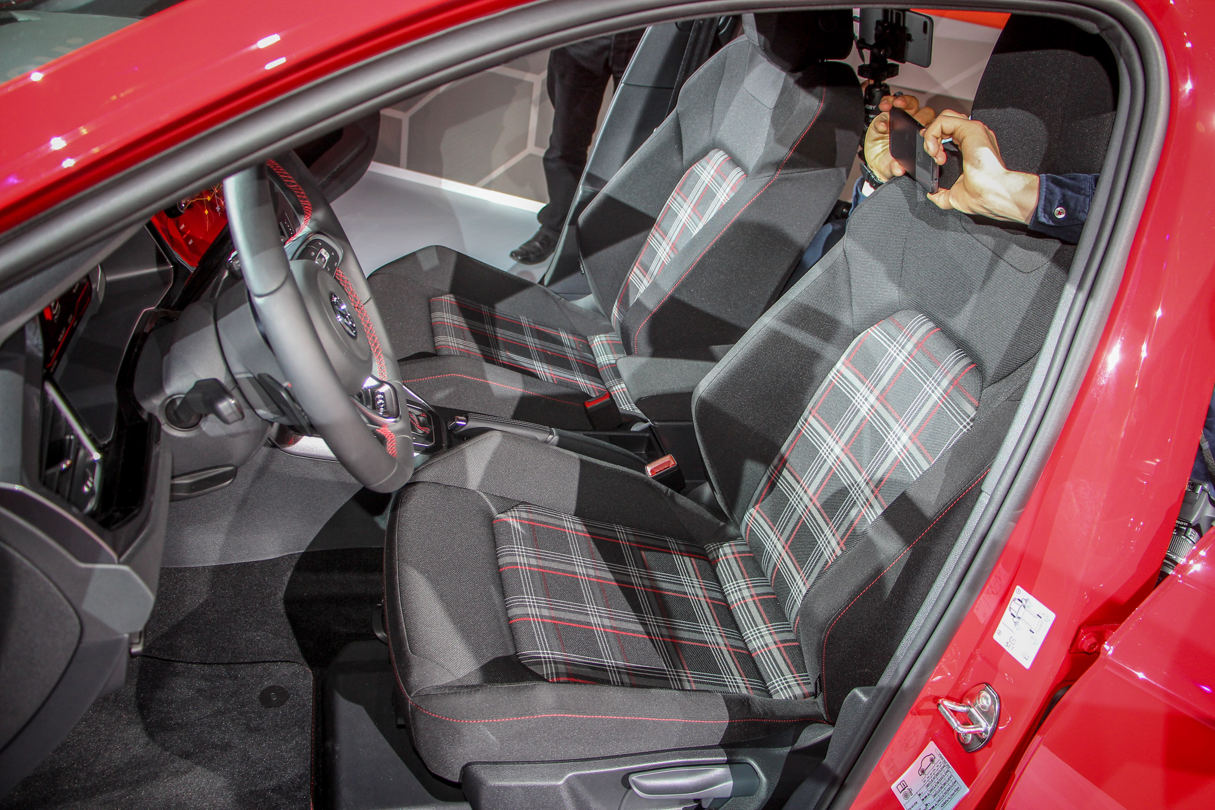 A GTI klasszikus kockás ülései még mindig jól mutatnak, csomagtere viszont csak a dupla padlóval együtt, pótkerék nélkül 351 liter
