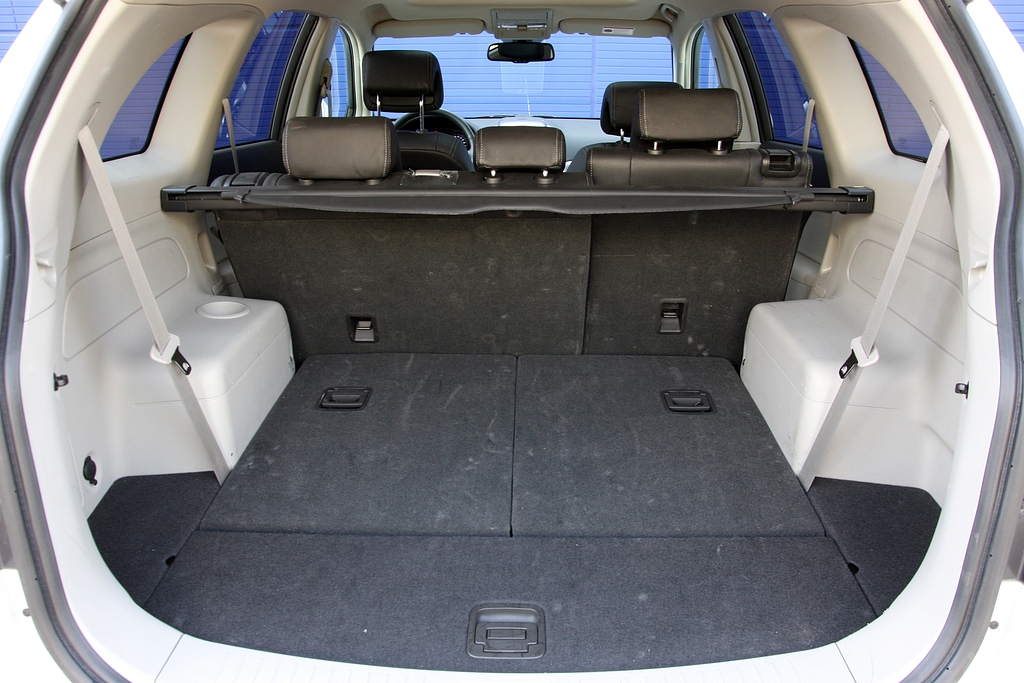 Matekozzunk! Hét üléssel parányi, 97 literes a csomagtartó, ez nagyjából két sporttáska. Öt üléssel, a kalaptartóig pakolva 447, a tetőig rámolva pedig 769 liter áll rendelkezésre. Ugyanez a szisztéma lehajtott középső sorral 942, illetve 1 577 liter