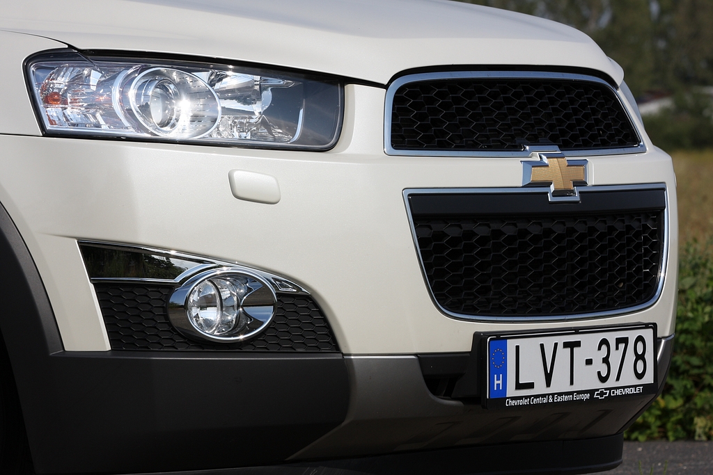 A Chevrolet Captiva 2.2 D LTZ AWD Aut. orrán akkora maszk díszeleg a hűtő előtt, hogy az Audinál belesápadnak a látványába, pedig a single frame hűtőrácsok sem éppen a szerénység jelképei.