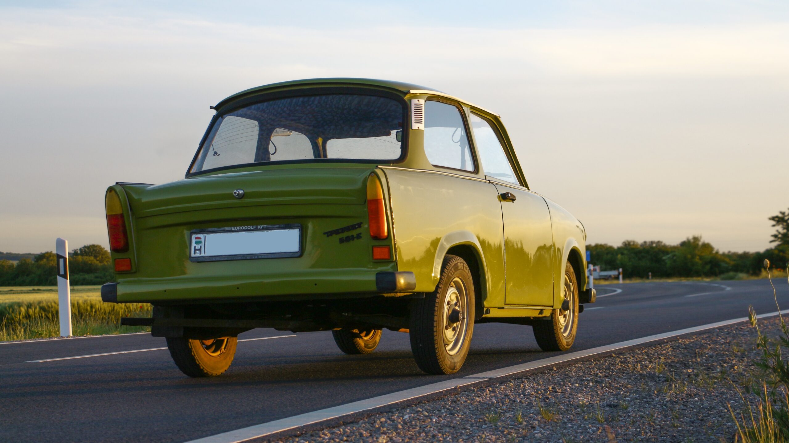 Meglepetésemre városon kívül sem jelentettem vele forgalmi akadályt, a közeli elkerülőre kifordulva kényelmesen tudta tartani a 90 kilométeres óránkénti sebességet. Bele sem gondoltam ott és akkor, hogy ez közel végsebesség lenne bárminek, pedig ennek a technikának papíron 100 a vége, de állítólag óra szerint a 110 is elérhető vele. Igen szürreális belegondolni, hogy ez a kocsi fél évtizeddel újabb a feljebb hivatkozott Golfomnál, hiszen a Volkswagen sokkal autószerűbb és mai szemmel is gyakorlatilag kompromisszummentesen használható. Ez sajnos a Trabantról már nem mondható el, elöl nem automaták az övek, hátul egyáltalán nincs is szíj, eggyel kevesebben ülhetnek bele a kelleténél, a csomagtartója pedig kicsi és rosszul pakolható, de legalább a kitámasztását kreatívan és praktikusan oldották meg.