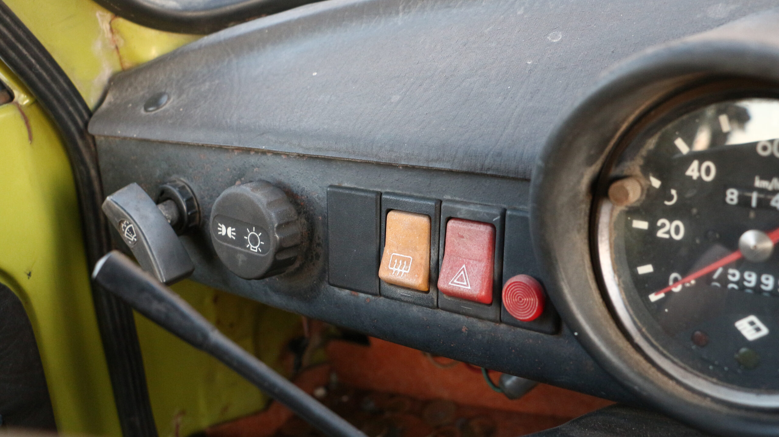 A korábban már említett Wartburg kapcsoló a műszeregység egyik oldalán,a műszerfal közepén pedig a Trabant logós gyári rádiófiók-takaró - ebben legfeljebb a motorhangot tudod hallgatni