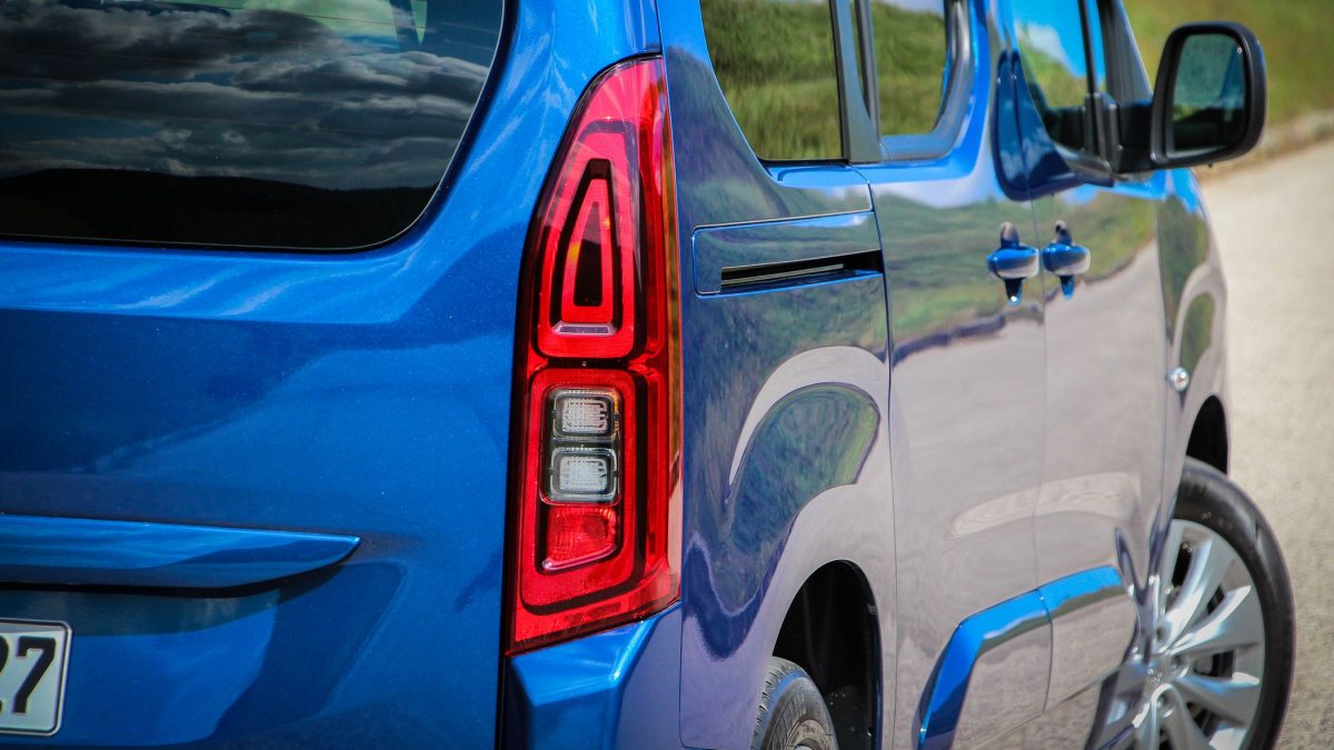 Nincs nagy tér a furgonszerű formán a hátsó izgalmassá rajzolására, de a Combo hátsó fényei egészen látványosra sikerültek a bura alatt