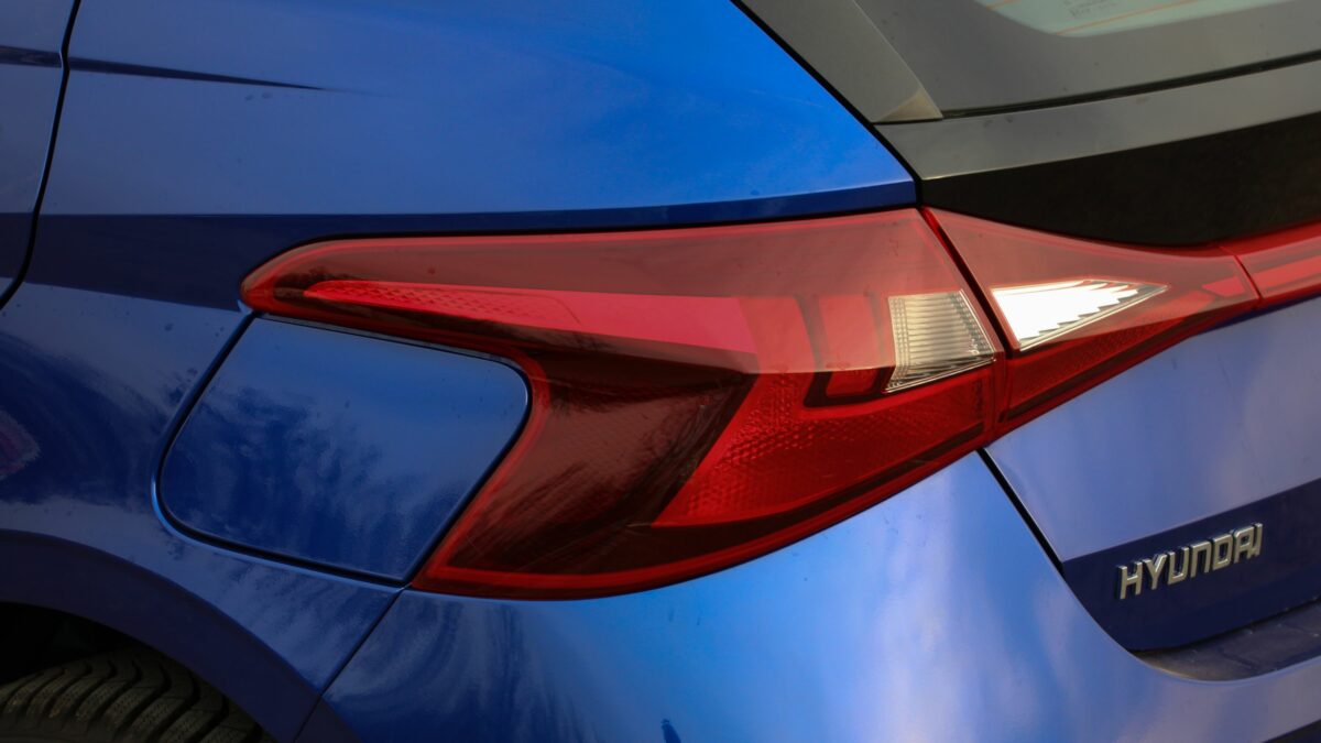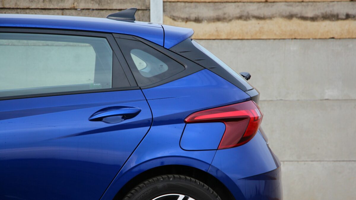 Tucson előtt láthatta a nagyvilág az i20 formatervét, amely az új formanyelven „íródott”. Habár nem annyira extravagáns, mint a szabadidő-autóé, de így is kiemelkedően izgalmas szerintem a kisautók között. Az a sok éles ív és „vágás”, mintha egy szélviharban formálódott volna a végleges állapotába. Tekintete morcos, kihívó, a hűtőrácsban én a Hyundai embléma ismétlődését véltem felfedezni, ami olyan, mint egy szépen rímelő vers műanyagba öntve. Az autó oldalán bár semmiféle koptatócsík nincs, a nagy lemezfelületek nem válnak unalmassá, hiszen az emelkedő övvonal mellett a többi él is a száguldás érzetét kelti. Hátul pedig a lámpákat összekötő fénycsík csempész nagyautósabb hangulatot az összképbe. A sportosság jegyében még egy kis diffúzor utánzat is jutott ide, ami talán egy kicsit túljátszottnak hat, de végülis jól mutat.