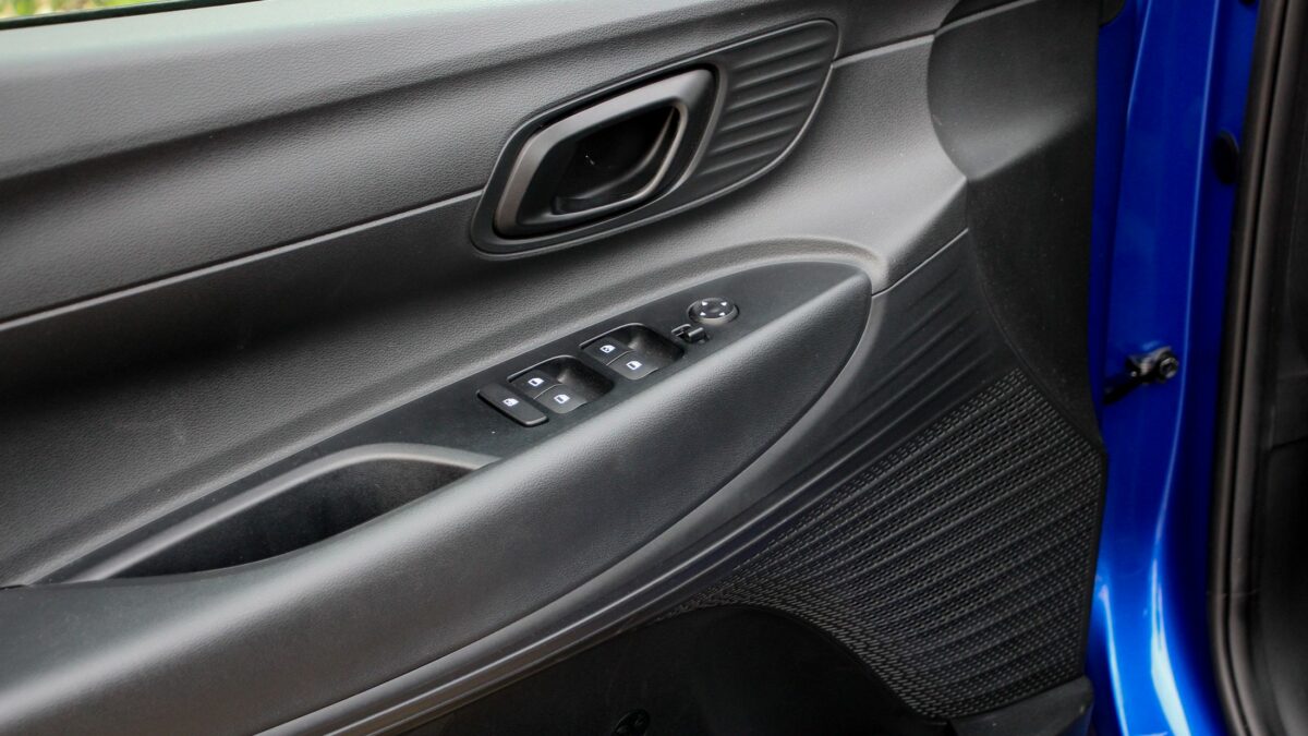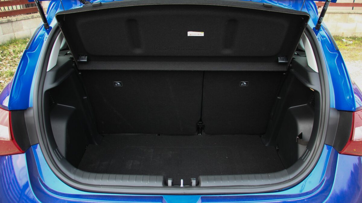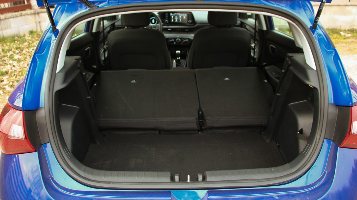 Mérlegelve mindazt, amit az utastér nyújt, nincs ok elszomorodni. Bár a hangulat kissé komor a sok fekete és szürke műanyagtól, de ezen gyorsan túlteszi magát az ember, miután kényelmesen elhelyezkedett a szövetkárpitos ülésekben. Ez a kényelem pedig elölre és hátulra is vonatkozik. Sőt még használható méretű csomagteret is kapunk, ugyanis alaphelyzetben 325 literes az i20 puttonya, de ez akár 1165 literesre is nőhet. Igaz, a padló nem lesz teljesen sík, és a padló alatt nem vár pótkerék, csak defektjavító készlet.