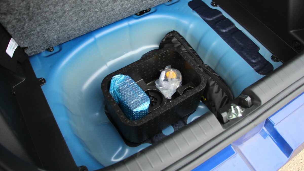 A csomagtérbe is csak azért, mert nem teljesen sík a padlója a hátsó üléseket lehajtva
