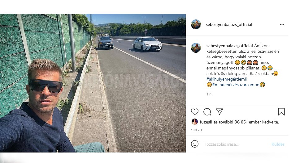 Én inkább azt mondom: mindig használjatok online kapcsolatos navigációt, Google Térképek, vagy Waze, engem sokszor mentett már meg hatalmas dugóktól, persze olykor némi kerülővel, amihez pedig kell üzemanyag, vagy töltés. Villanyautóval is jártam már így, volt, hogy a töltési tervet is újra kellett írni, de szerencsére még sosem maradtam hatótáv nélkül, s nem jártam úgy, mint Balázs. Akitől persze én is elnézést kérek a citálásáért, de túl magas labdát dobott. Posztjához a Magyar Közút is hozzátette: "@sebestyenbalazs_official tudod, hogy szeretünk, vigyázz magadra! Kitartást a komment cunamikhoz!" Amit meg is kapott, az OMSZ például megjegyezte "Nem is kell UV-B sugárzás a leégéshez!", a Volánbusz például a buszos utazásra invitáláshoz használta a felületet, amit persze akadt tréleres is, aki kihasznált.