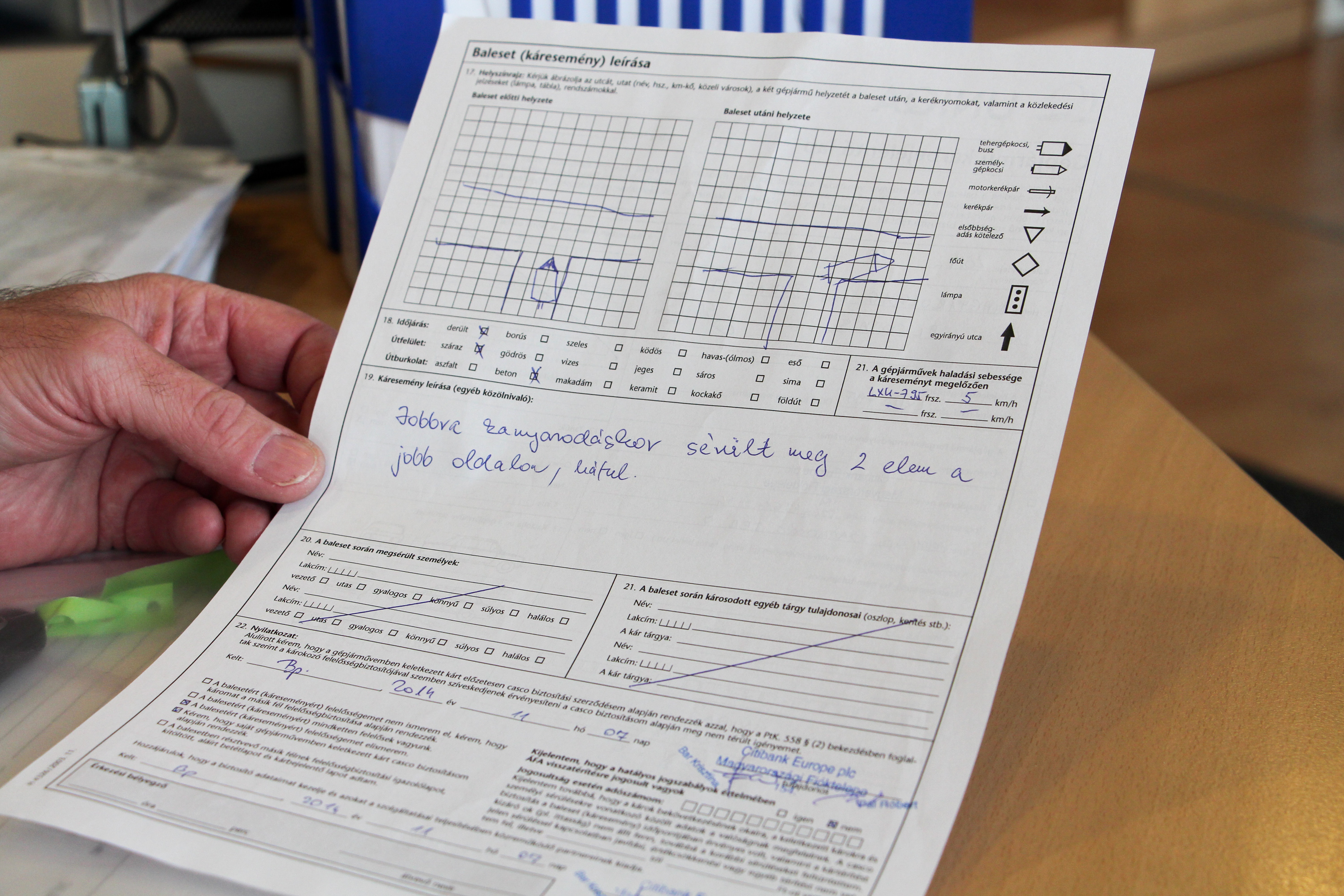 A kárbejelentő minden fontos információt meg kell adjon. Nem elegendő, hogy "jobbra kanyarodáskor sérült meg 2 elem", be kell vallani, hogy nem magától, hanem attól, hogy ott volt egy kemény tereptárgy, amit nem vett észre a sofőr