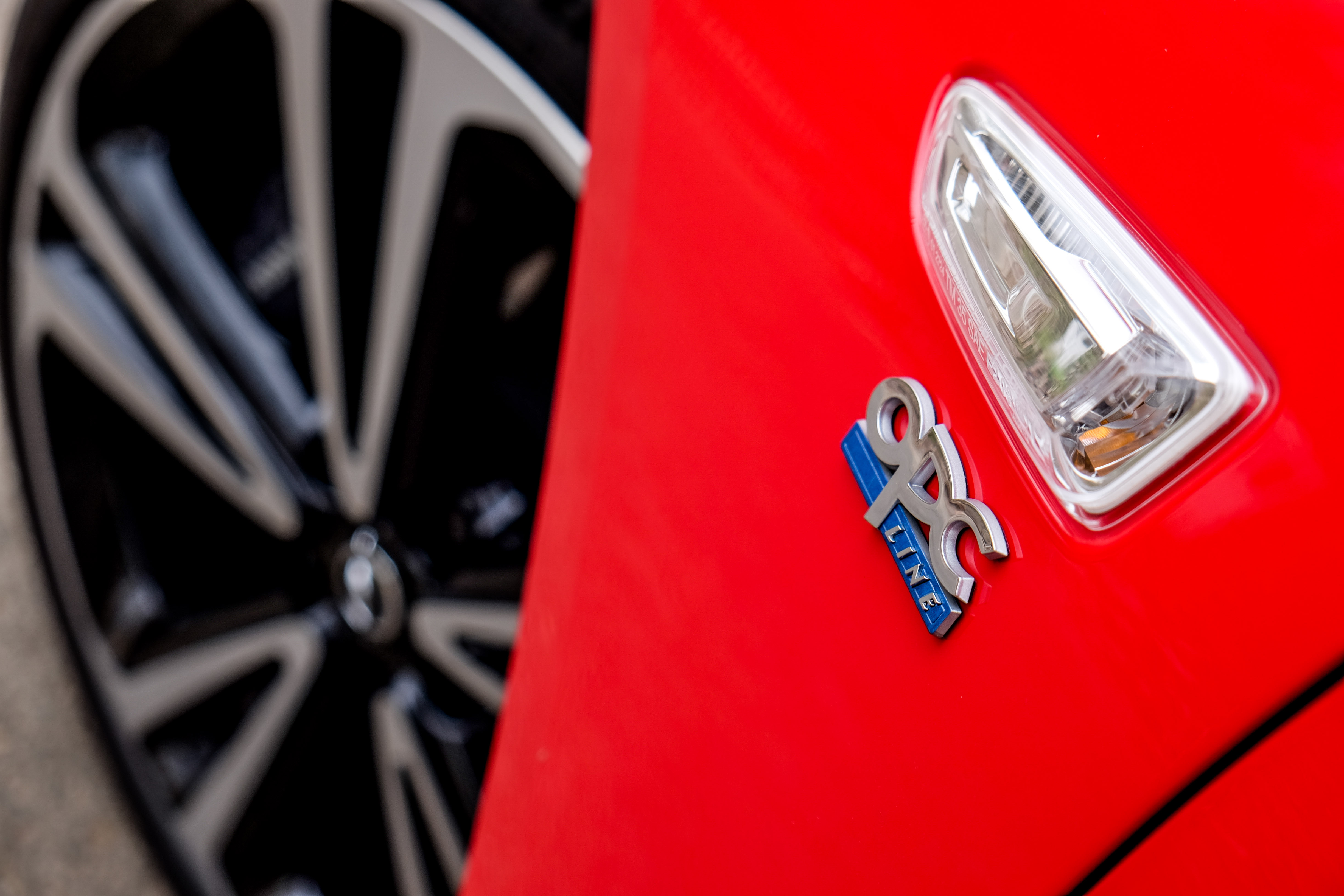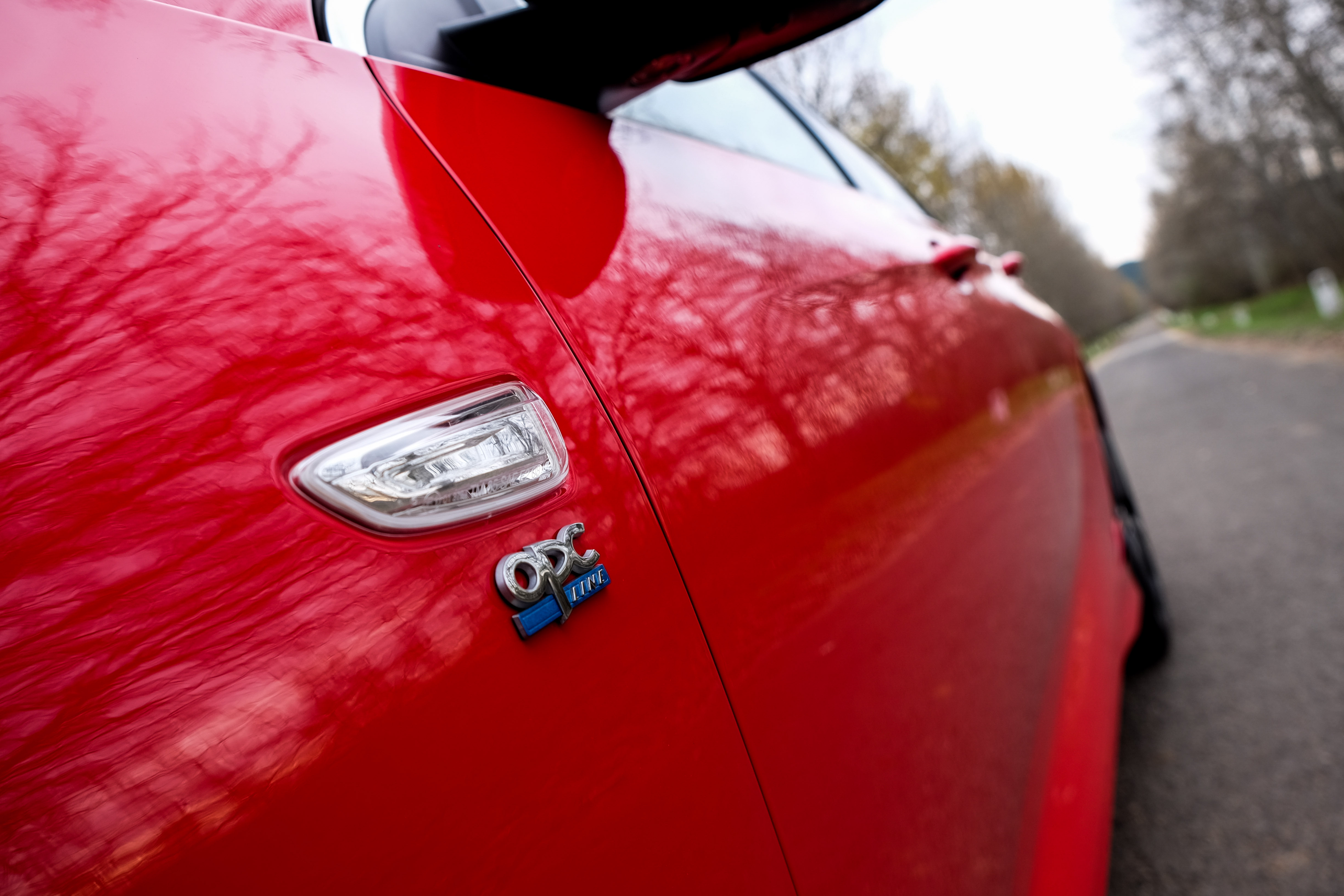A durva OPC-re még várhatunk, legközelebb a GSi érkezik a piacra, addig viszont csak az OPC Line van. Ez kívülről is sportos kiegészítőket jelent, ami a piros fényezéssel még jobban kiadja a formát. Ezeket 20 colos felnikkel fejelték meg, amikre Conti SportContact gumikat húztak, mögéjük meg hatalmas Brembo fékeket feszítettek.
