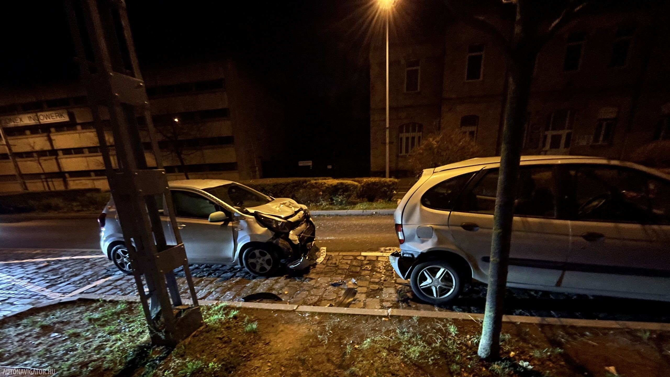 Az irányonként egysávos, középen ráadásul elválasztott Vajda Péter utcában történt éjszaka a jelentős anyagi kárral járó baleset, az autómegosztó autója négy másikat tolt egymásnak.