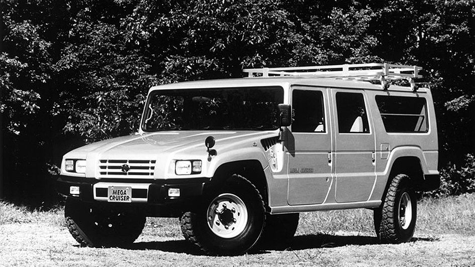 Annál is helyén valóbb a párhuzam, mert a Toyota Land Cruisert eredetileg katonai járműnek tervezték, pontosan úgy, ahogy a Mega Cruisert is – az már a sors (ez esetben nagyon is kiszámítható) játékának tudható be, hogy az utóbbi valójában soha nem lépett túl keretein.