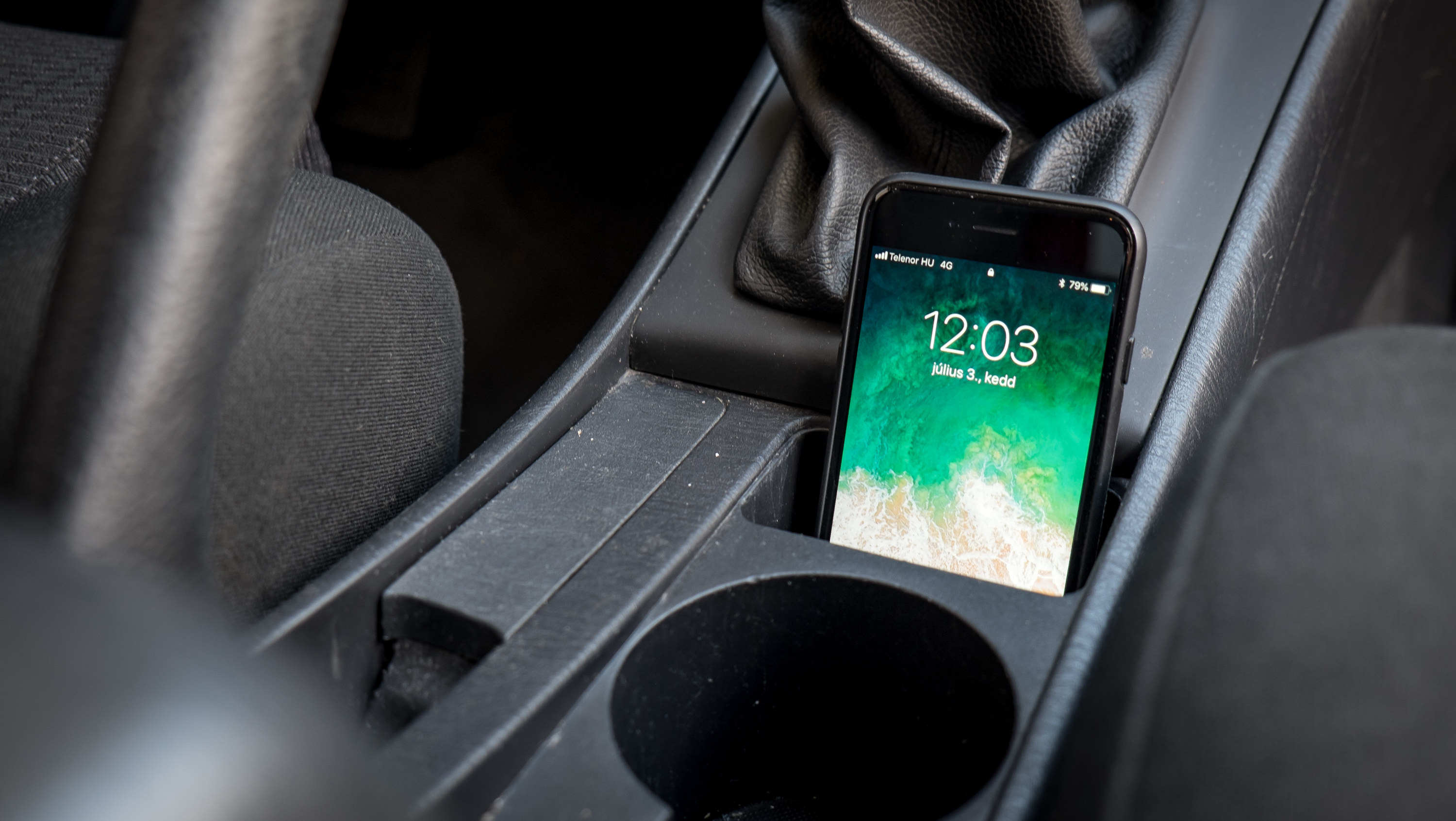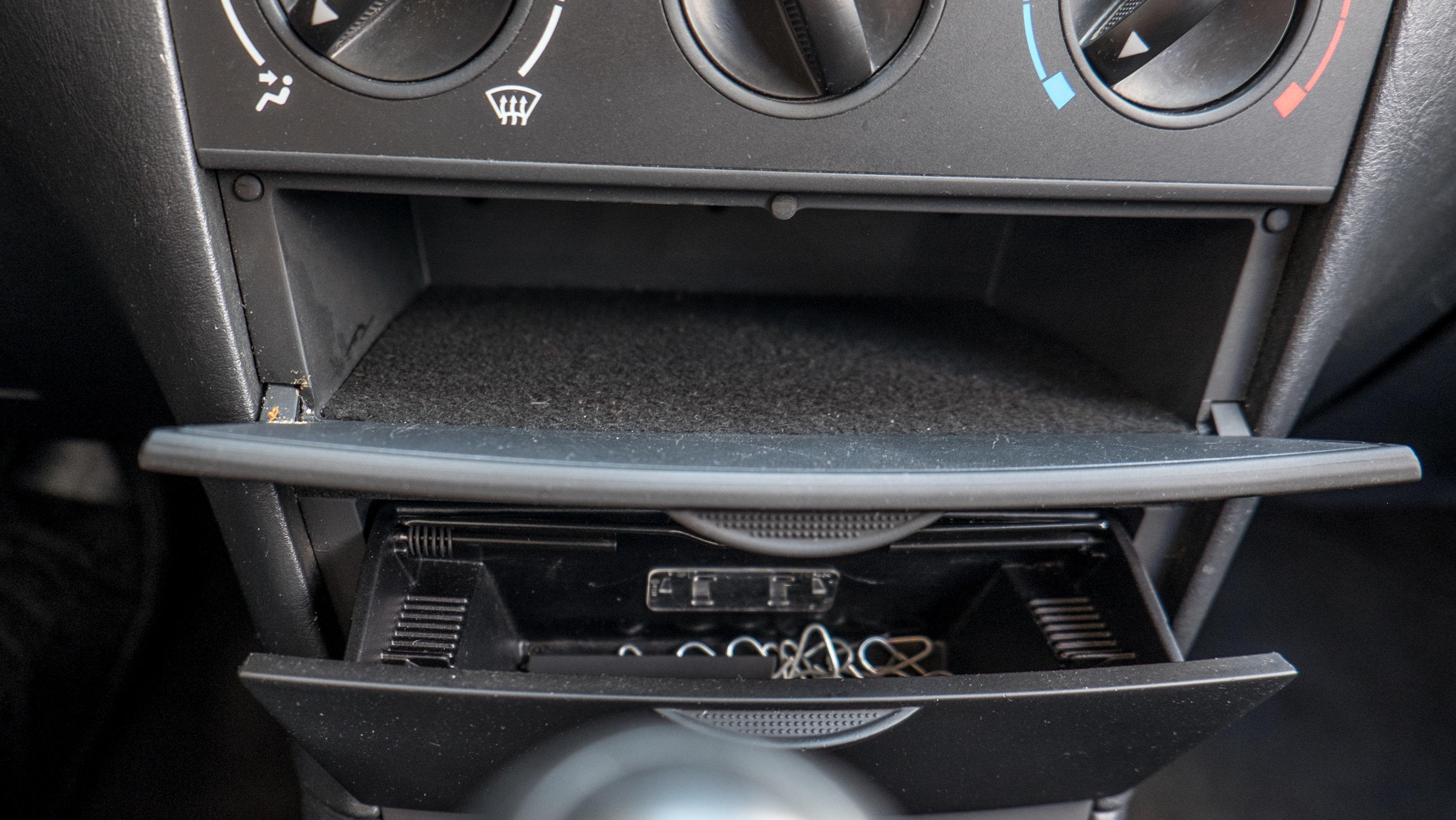 Kétféle zárható rekesz is van a középkonzolon, szépen beépítették a rádiót, átlagosan szól a rádió, és nocsak, egy telefontartó, az okostelefon korszak hajnaláról, ma már ilyet kevesen raknak autóba 🙂
