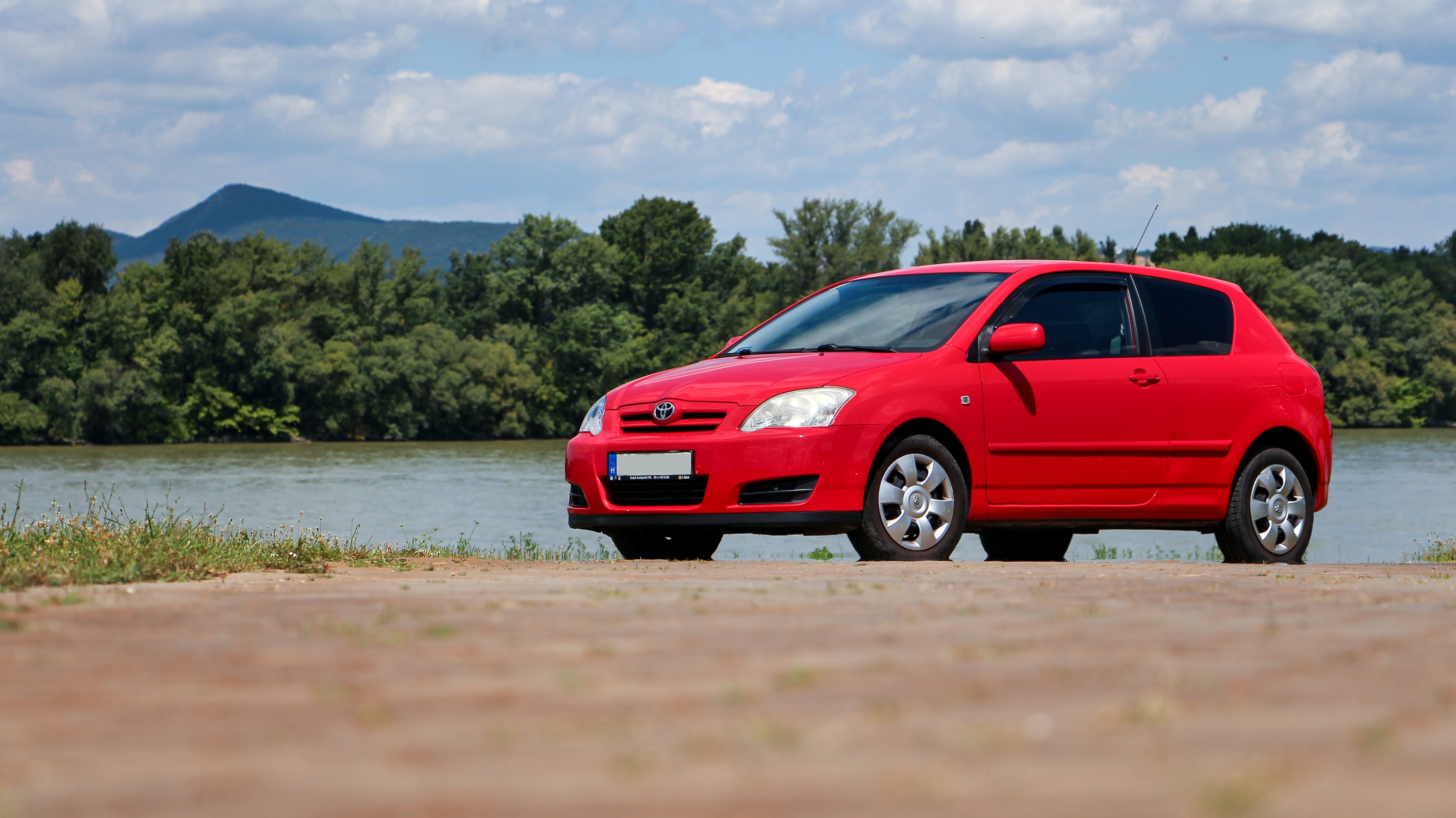 Egészen izgalmas a tálalás a piros fényezéssel és sötét ablakokkal, pedig ez egy Corolla, unalmasnak kéne lennie