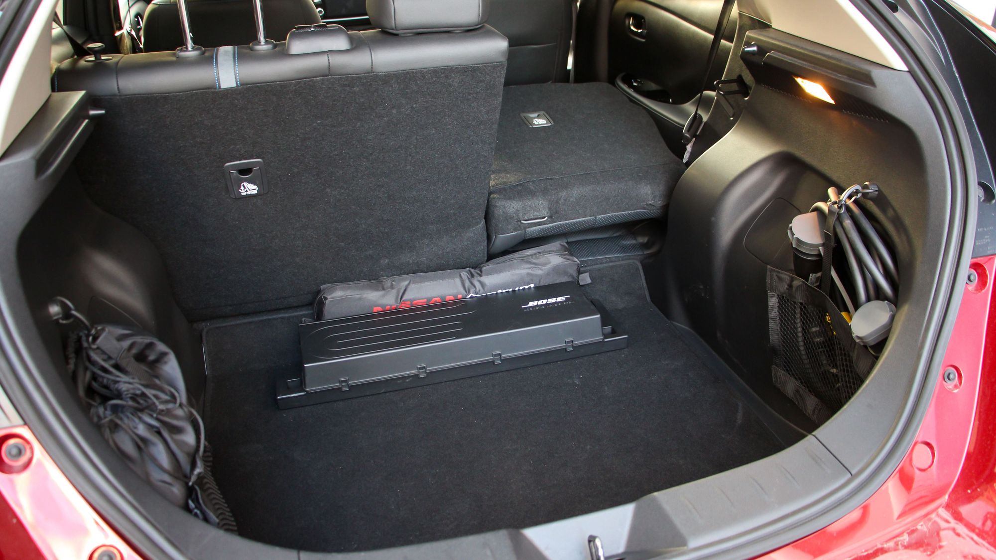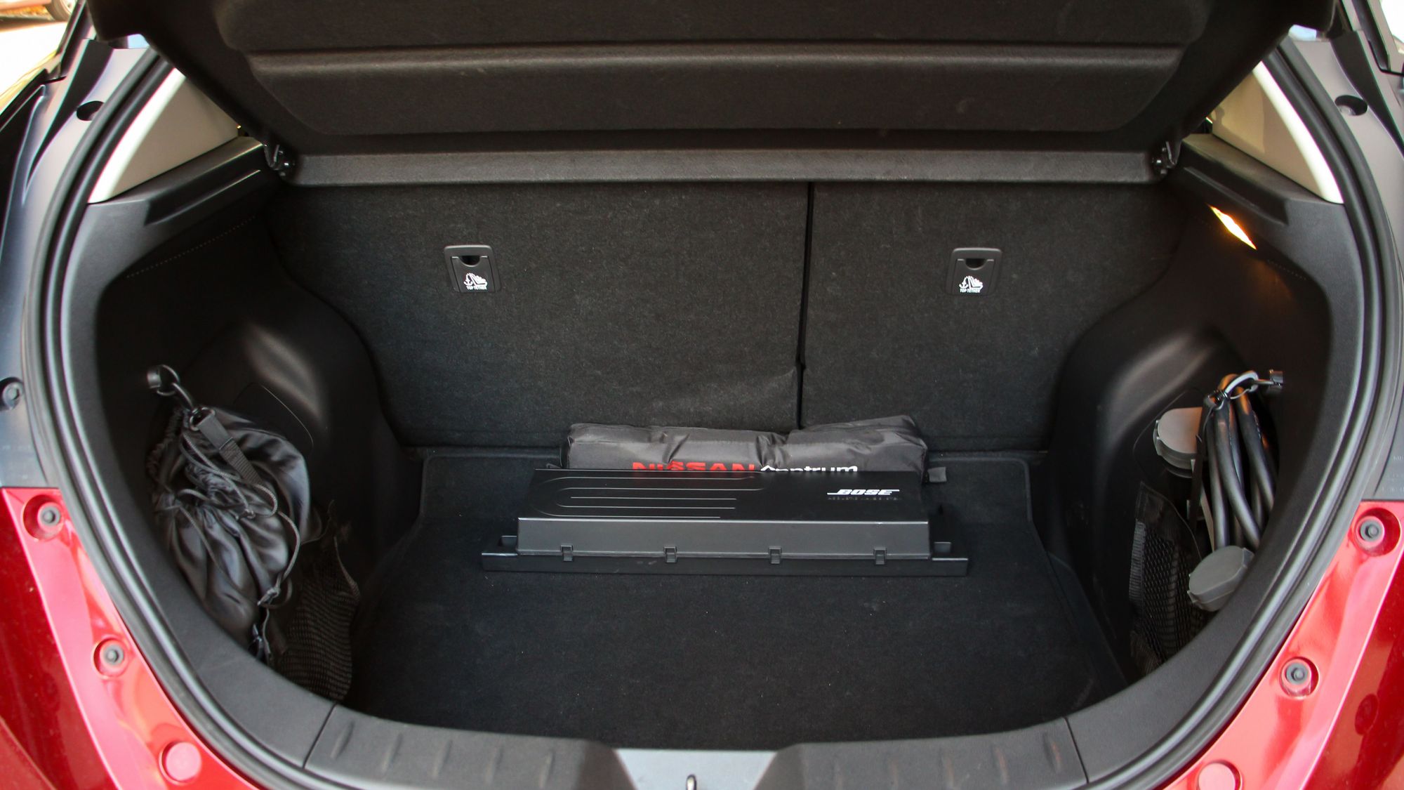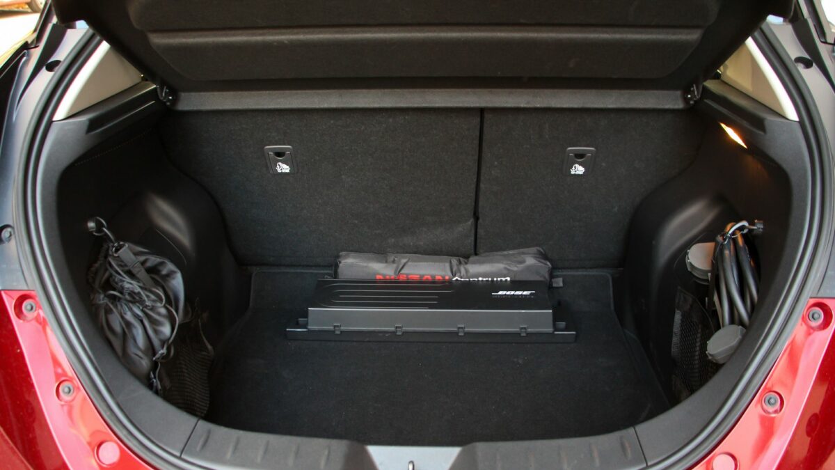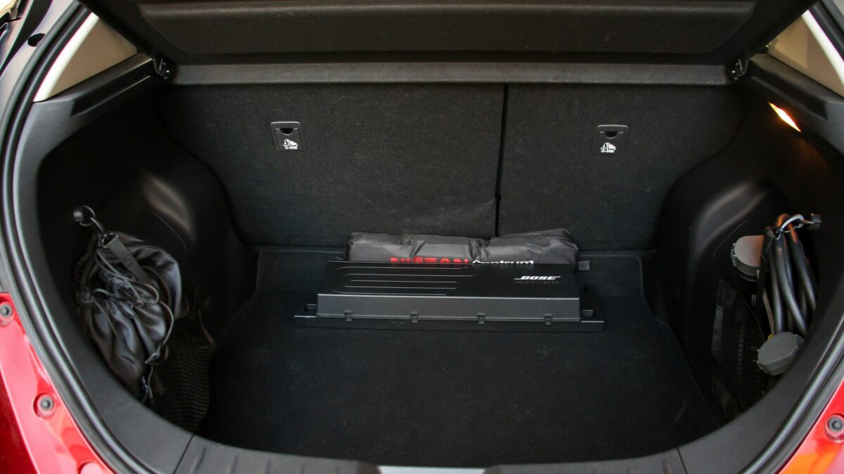 Az erősítőjével a csomagtérben kelletlenkedő Bose hifivel is 420, nélküle 435 literes, ülésdöntéssel több mint 1 köbméteres a csomagtér. Alapáron jár a konnektoros töltő és a Type2-es kábel, ahogyan a CHAdeMO csatlakozós villámtölthetőség is