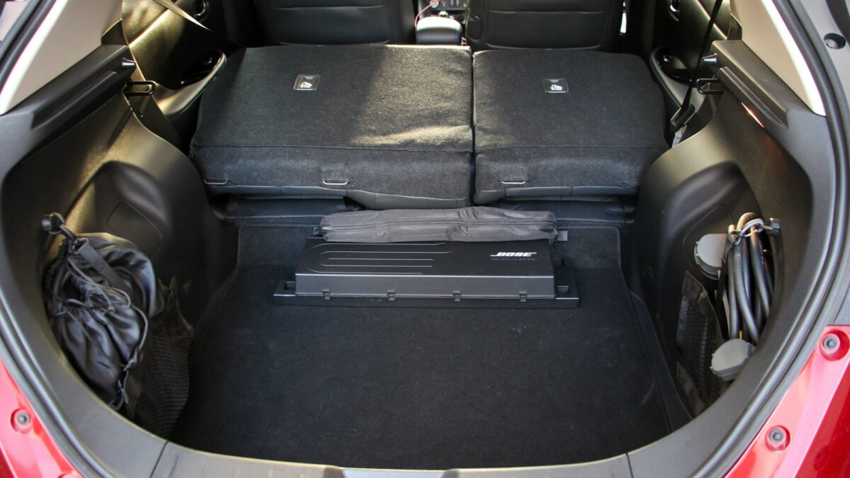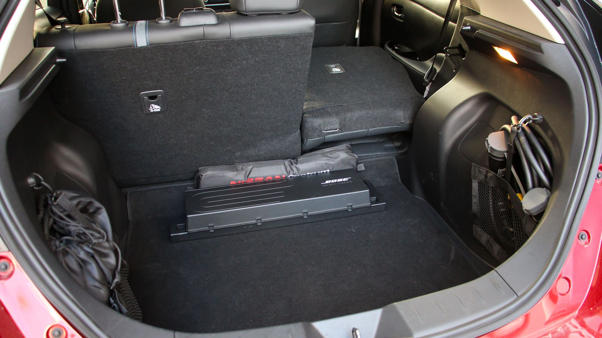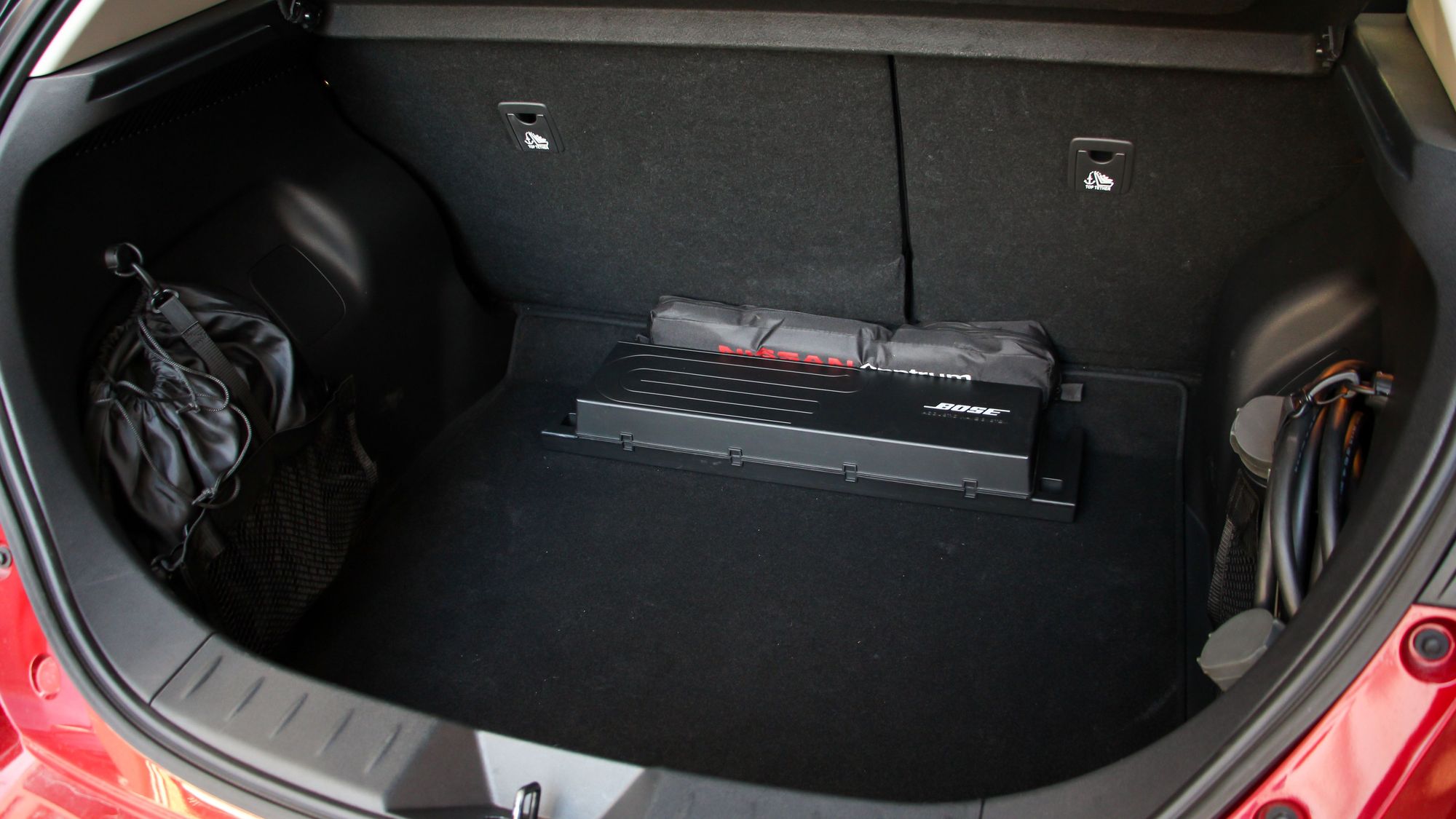 Az erősítőjével a csomagtérben kelletlenkedő Bose hifivel is 420, nélküle 435 literes, ülésdöntéssel több mint 1 köbméteres a csomagtér. Alapáron jár a konnektoros töltő és a Type2-es kábel, ahogyan a CHAdeMO csatlakozós villámtölthetőség is