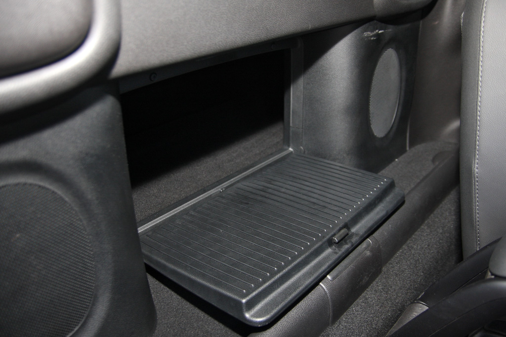 Minis mércével tágas a csomagtartó, például egy Suzuki Swift tulajdonosa is csak álmodozhat ekkora kufferről. Lépcsős padlója alatt laknak a szokásos felszerelések, ha pedig hosszabb valamit szállítanánk, van átjárás az utas- és a poggyásztér között