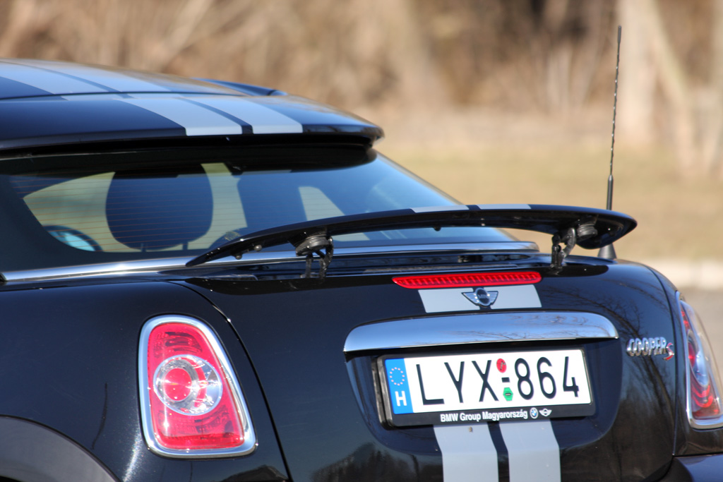 Ha a döntött szélvédő nem látszik, szemből meg nem mondani, hogy Coupéval van dolgunk. A tolatóradar szükséges extra, a dupla kipufogó taposáskor ordít, Sport módban gázelvételnél pedig lelkesen visszadurrog. Van erősebb verzió is (a JCW, azaz John Cooper Works), de ha egy Minin a Cooper S feliratot látjuk, jobb, ha nem akarjuk legyorsulni