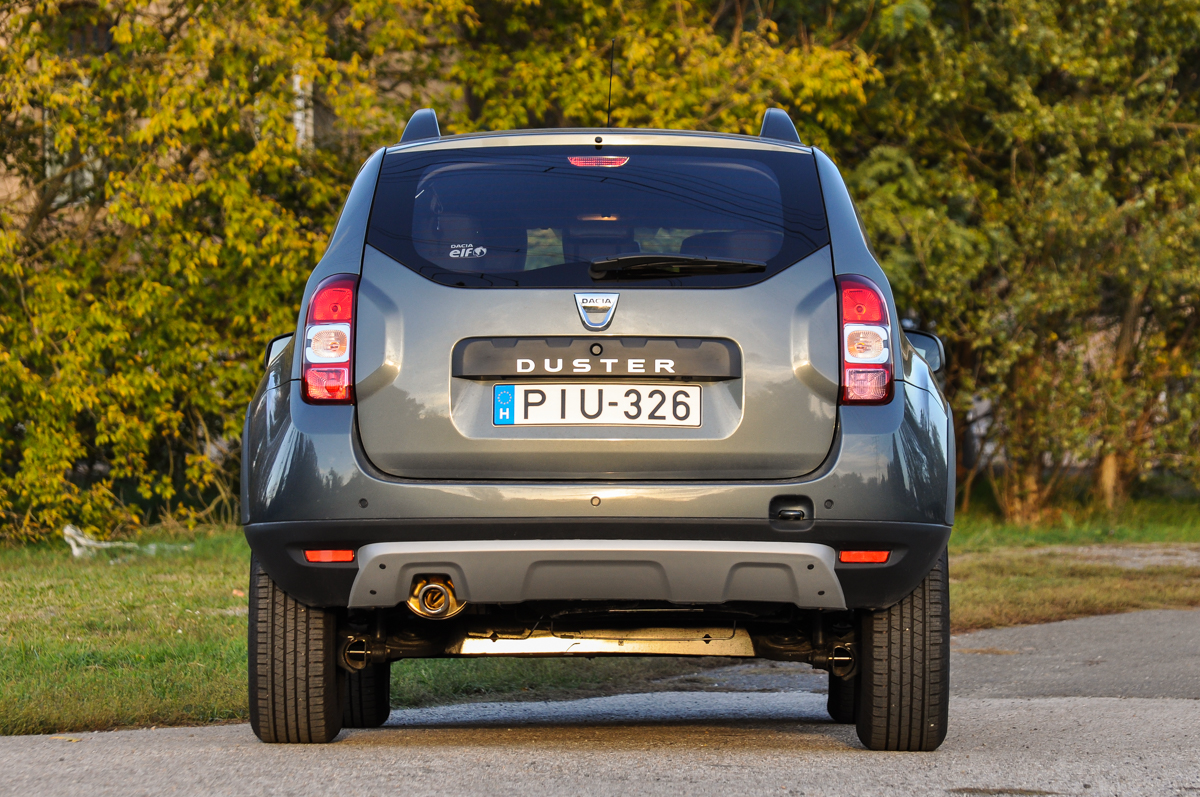 A külső már fenyítőbb, de szerencsére nem számunkra. Tesztautónk meteorszürke színe nagyszerűen egészítette ki a Duster meggyőző 21 centis szabad hasmagasságát és persze a finom maffia kisugárzást is. Az első-hátsó ezüst koptatók és a körbefuttatott műanyagozás megadja a masszív kiállást, a 16 colos, hátul bizony dobféket takaró könnyűfém felnik pedig némi diszkót is bevetnek. A lényeg azonban a hajtás, ami annyira összeszedettnek és könnyednek hatott, hogy minden kiszállás után azt mondatta velem: