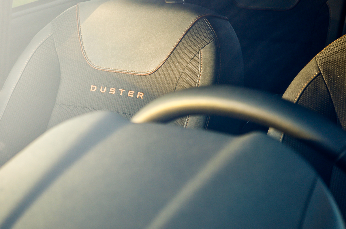 Narancs varrást és Duster feliratokat is kapnak a fullos ülések, a helykínálat továbbra is pazar odabent - mind a fejnek, mind a lábnak