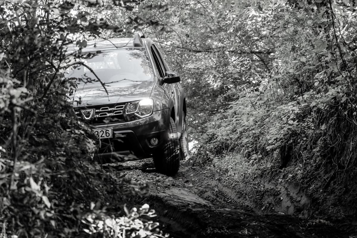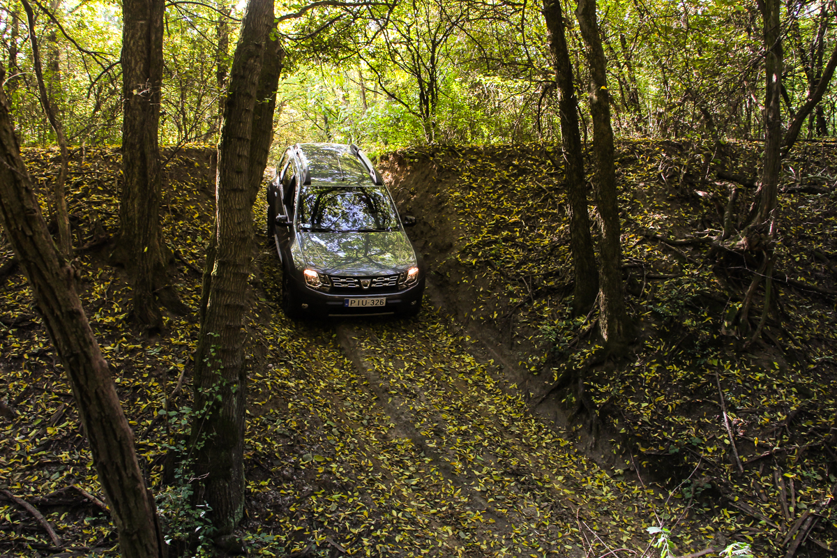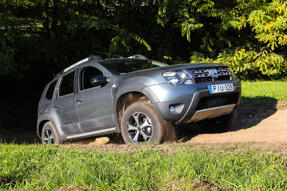 Ismét bebizonyosodott, hogy nagyszerű motor a Renault-Nissan csoport 1.5 dCi-je, ugyanis még a Dusternek is meglepően nyugodt karaktert kölcsönzött és terepen is kitartó társnak bizonyult. Már alacsony fordulaton nyomatékos, kevésbé éreztet turbólyukat, a 110 lóerő pedig elég ahhoz, hogy nagyot lépjen. Már kezdtem attól félni, hogy cserébe torkos lesz, de az 5,6 literes tesztfogyasztás eléggé meggyőző, főként miután nem keveset terepeztünk is. Ehhez pedig kell az is, hogy ennyire jól összehangolják a 6 fokozatú EDC automatával. Gyorsan és finoman vált, észrevétlenül dolgozik alattunk a duplakuplungos váltómű, nem olyan ideges, mint amilyen például a Capturben volt. Mindig éppen ott váltott, ahol én tettem volna, a gázreakció is rendben. Persze a dízel nagyon traktor, de a hangszigetelés hiánya, így az utasteret belengő kerregés is csak annak éreztetése, hogy olcsó autót vettünk. Még a szervó és a turbó működését is hallhatjuk odabent, a rezonancia is elég jelentős, de ez egy félterepjárónál inkább szexi szerintem. Együtt lehet élni vele, ahogy minden apró botlásával is. Sokkal fontosabb a magabiztos viselkedés terepen is.