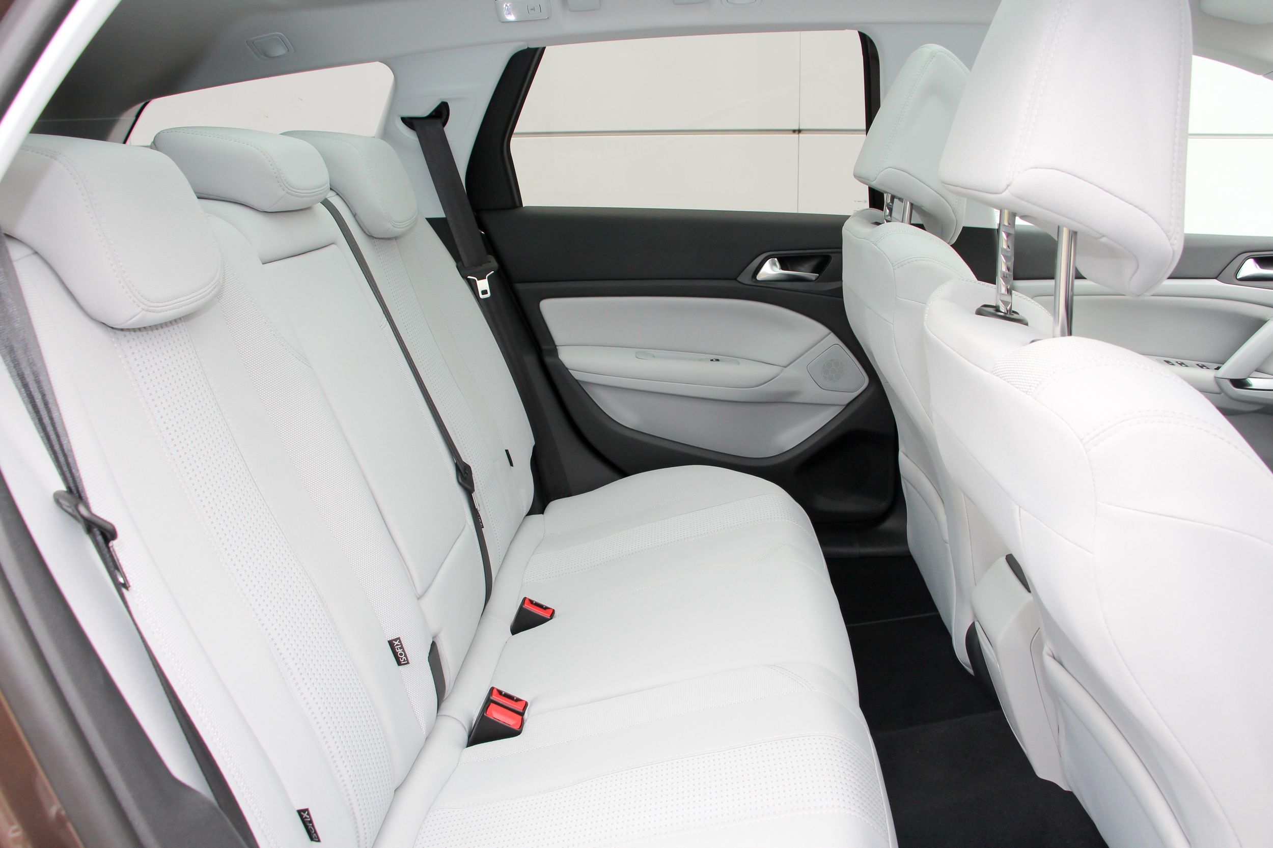 Teret növelő és persze könnyedén koszolódó a világos kárpitozás. Hátul ügyes trükk az emelt Isofix-csatlakozó. Mindkét sorban kényelmesek, elöl felárért fűthetők és masszírozósak az ülések