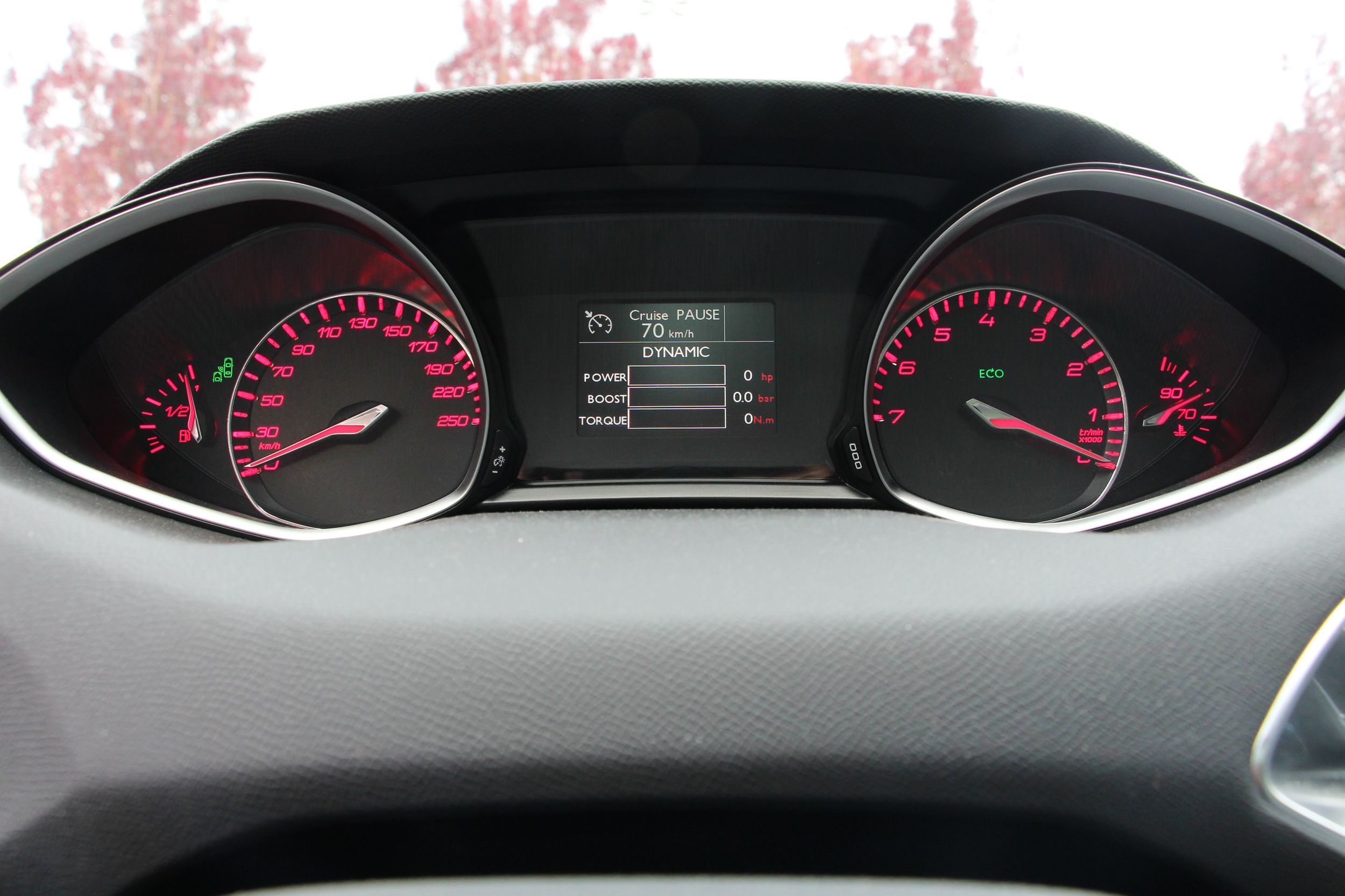 Vörös is lehet. Feláras tételként kapcsolható a Sport-mód a gázpedál reakciójának közvetlenebbre hangolásával, az eléggé szintetikus, de visszajelzést úgy sem sokat adó elektromos szervós kormány rásegítésének visszafogásával, a műszerblokk pirosra színezésével, valamint teljesítmény-, nyomaték és turbónyomás-mérő megjelenítésével. Ennek igazából egyetlen értelme van: megmutatja, hogy józanul vezetve alig használjuk ki a motor erejét. Ha pedig kihasználjuk, akkor nem a gyári 4,9 literes vegyes fogyasztási értéket fogjuk kapni. A 308 SW nekem viszont nem az az autó, amiben erre vágynék, fémgombos váltókarjához nem túlzottan szerettem nyúlni, télen jellemzően hideg, maga a váltó pedig kicsit karcosan jár. Precízen megvezetett, szó se róla, Peugeot-ban rég találkozhattunk ilyen jó váltóval, de azért egy hajszálnyit járhatna könnyebben, klattyanhatna finomabban a fokozatokba. Még egy kicsi kritikával illethető a futómű is. Alapvetően kényelmes, lágy, és talán éppen ebből eredően a fekvőrendőrökön szinte döccen és közben koppan az autó, hiába megyünk rájuk lassan. Ez viszont leginkább csak a vékonyabb „fekvőközegeken” jelentkezik, a méretesebbekre már az általánosan megszokott kényelemmel mászhatunk fel.