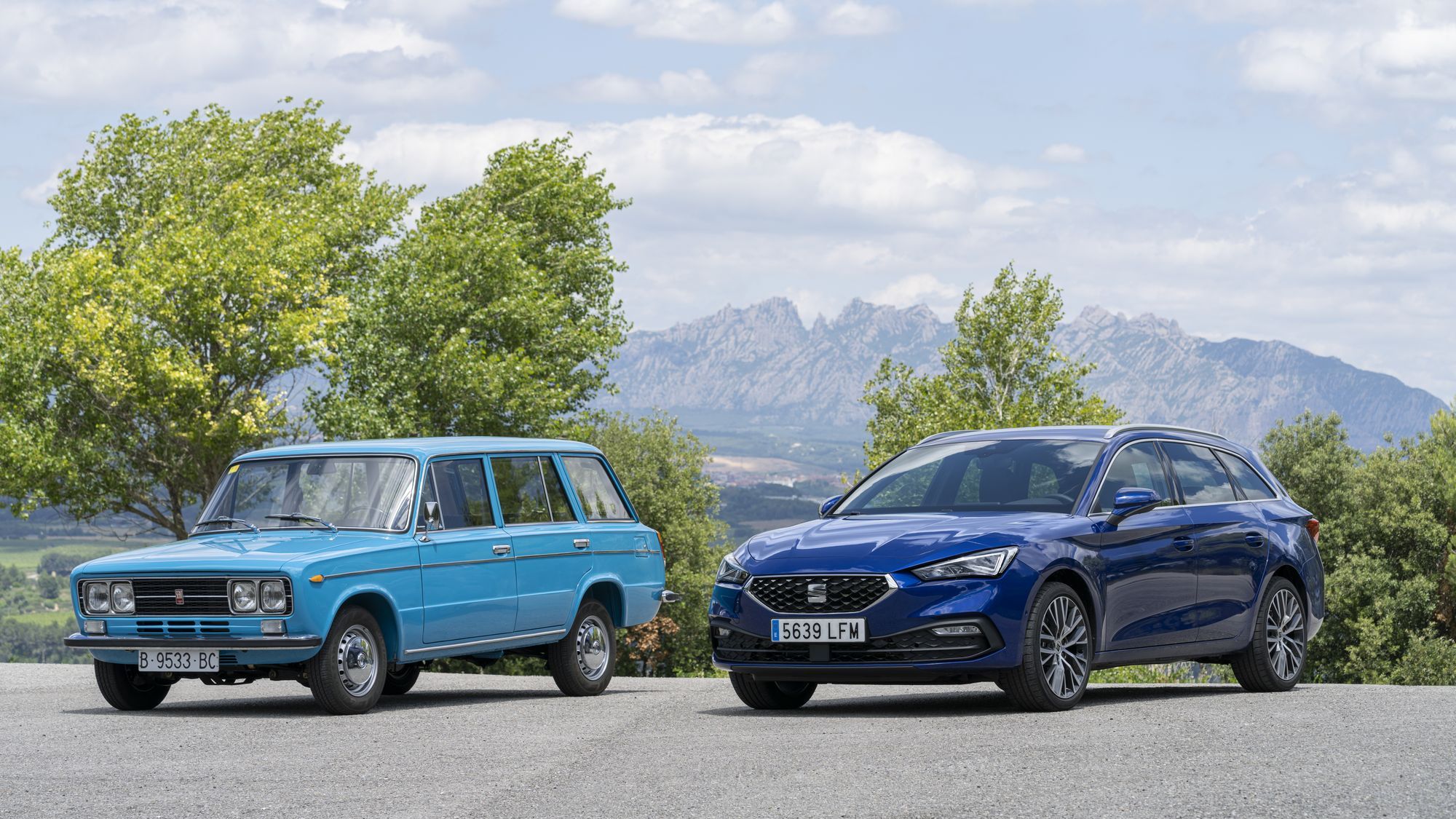 Balra a 4 méter hosszú SEAT 1430, jobbra mai utódja, a már a 4,6 méteren is túlnyúló Leon Sportstourer