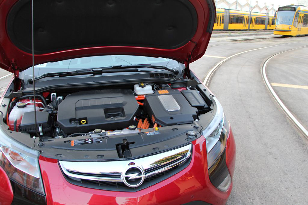 A Power gomb megnyomására csak „lemerített” akkumulátor mellett indul el az 1,4 literes, változó szelepvezérlésű, 86 lóerős benzinmotor. Hajtani azonban akkor sem az hajt. Az Ampera alapvetően villanyautó, kerekeit 150 lóerős, 370 Newtonméter nyomatékú villanymotor forgatja. Ameddig van töltés az akkumulátorokban, a benzinmotor áll. Pontosabban ameddig Normál üzemmódban autózunk. Lehetőség van ugyanis az akkutöltés megőrzésére, olyankor a benzinmotor forog, egy generátort hajt, ami árammal látja el a bolygóművön keresztül hajtó villanymotort. A bolygóműre pedig azért van szükség, mert a hajtásba – például Sport vagy Hegyi üzemmódban, illetve autópályán – a benzinmotor közvetlenül is besegíthet.