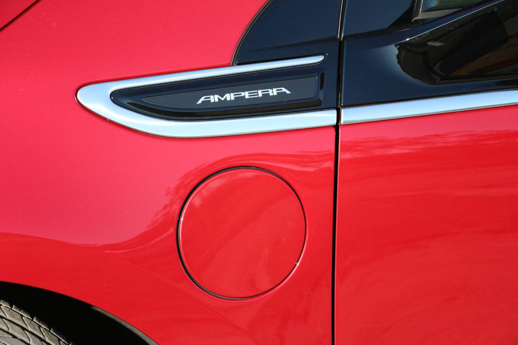 Alapjait a koncepciómodellként 2007 elején, sorozatgyártásúként 2008-ban bemutatott Chevrolet Volt adja, maga az Ampera azonban csak tavaly tavasszal érkezett meg a Genfi Autószalonra. Alig több mint egy éve Hollandiában már volt módunk vezetni, de teljes - egy hetes - együttélésre csak most volt lehetőségünk. A 4,4 méteres, láthatóan erőteljesen légellenállás-barát (Cw=0,26) karosszéria kompakt, sziluettjével a hibrid modelleket követi, részletei közül az orr jellegzetesen az Opel mai arculatába illő, a lemezek élre vasaltsága azonban inkább chevy-s. Feltűnő az alacsonysága, 1430 milliméterével sportautósan lapos, hasmagassága is szerény, orrán a koptatóbetét szinte mindenhol leér.