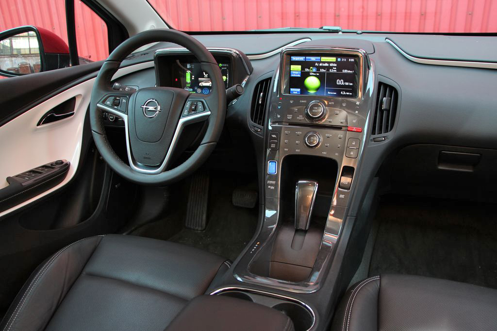Opeles részletmegoldásokat és jövőbe mutató alapkoncepciót mutat fel a műszerfal. Ismerős – természetesen elektromos szervós – kormánykereket tekerhet a sofőr, miközben maga előtt variálható kiosztású, TFT-panelből alkotott műszerfalat figyelhet. Utóbbi legegyedibb eleme az energiafelhasználást, illetve –visszatáplálást mutató varázsgömb, melyet középen tartva optimális a vezetési stílus. Hatótávból három is látható: benzines, elektromos és kombinált. A műszerfalon túl van még másik óriás kijelző is az Amperában, a középkonzol tetejére helyezett ráadásul érintésérzékeny, az energiaáramlások mellett a merevlemezes, DVD-olvasós Bose audiorendszer kezelőpultját, tolatókamerát és navigációt is megjelenítheti – kár, hogy utóbbi egyelőre magyar térképpel nem rendelkezik. Az érintőképernyő alatt a középkonzol többi gombja is érintésérzékeny. Ez egyedi, de kényelmetlen megoldás: a funkciók véletlenül is aktiválhatók, a szándékos kapcsolások azonban nem mindig sikeresek, így aztán minden esetben kontrollt, a pultra pillantást követelnek. A kulcs nélküli rendszerrel kombinált indítógomb azonban könnyedén eltalálható, vele az Ampera könnyedén menetkész állapotba hozható. [BANNER type="1"]