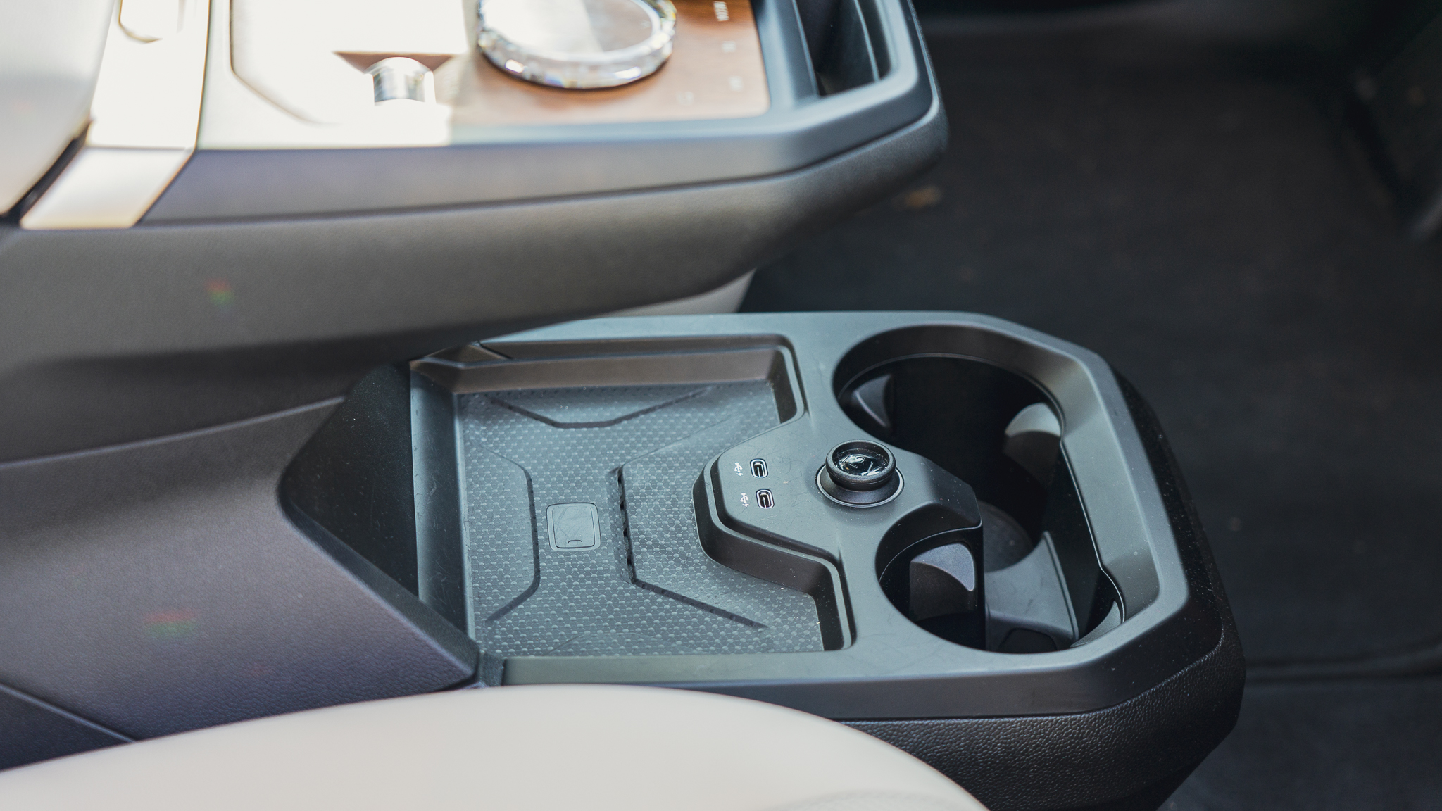A "lebegő" kartámasz és a meghosszabítása telitalálat. Minden funkciót elérünk róla. egyedül a fabetét furcsa, hisz nincs máshol jelen a térben, annak viszont a melegsége és a tapintása egyértelműen igazolja a használatát