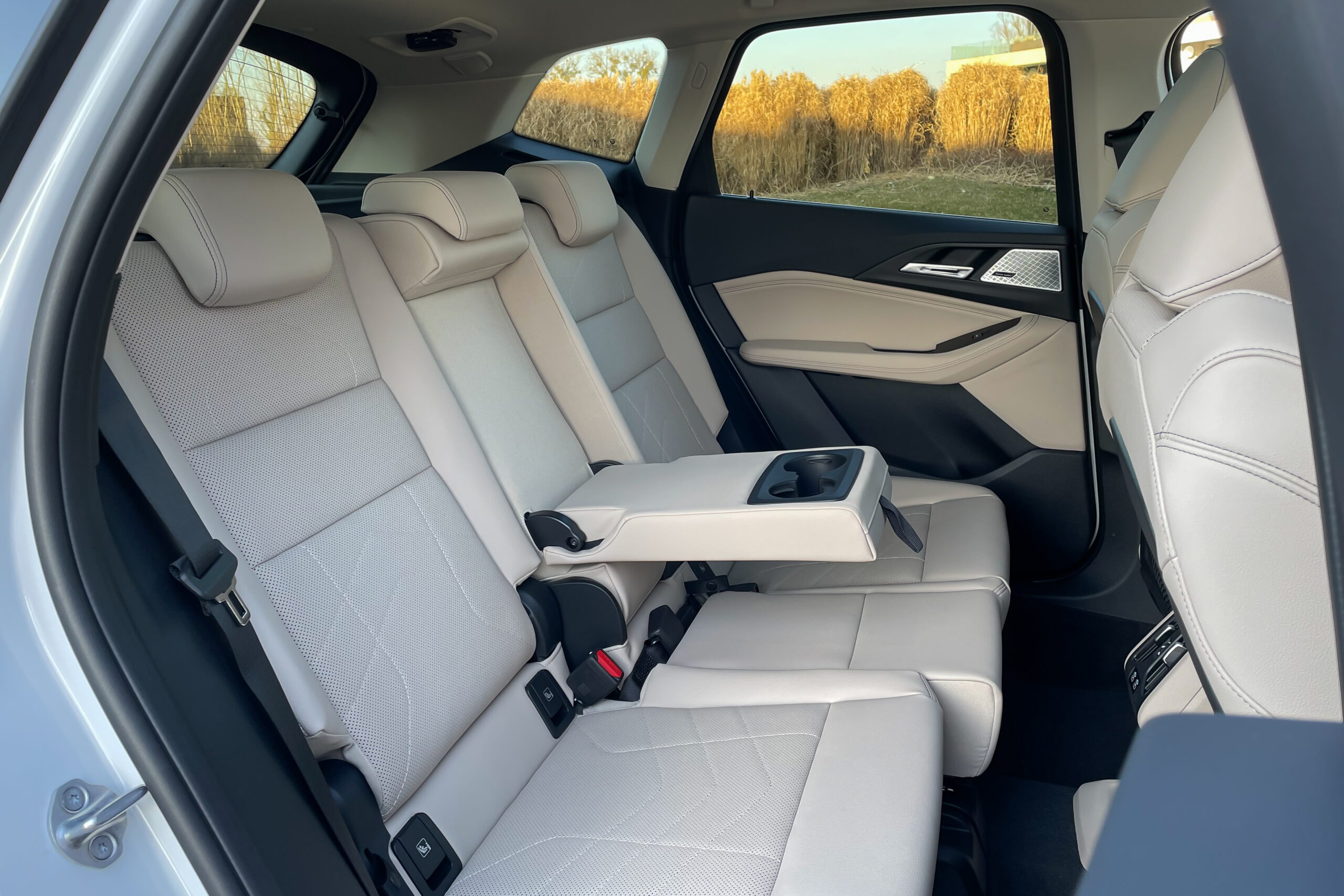 Az anyagminőség a márkára jellemző, pakolóhelyből bőven kapunk, a középkonzolra pedig a Teslákból ismert méretes és természetesen vezeték nélküli töltést is adó telefontartó került, olyan méretben, hogy akár egy iPad is beleférjen. Hátul 13 centis úton, 2/1 osztással tologatható az ülés, 40:20:40 arányban dönthető a háttámla, a hátsó sort 3 valódi ülőhelyesnek mondják, de a középső valójában keskenyebb a szélsőknél, s velük szemben Isofix-rögzítőt sem ad, ám abból az első utasülésre is jutott. A csomagtér alaphelyzetben 470 literes, padlórekeszt is adó, sík padlóval 1455 literesre bővíthető, ám a lágy hibrid rendszeres 220i és 223i a csomagtérpadlóba épített 48V-os akkumulátor miatt csak 415 literes alapméretet ad.