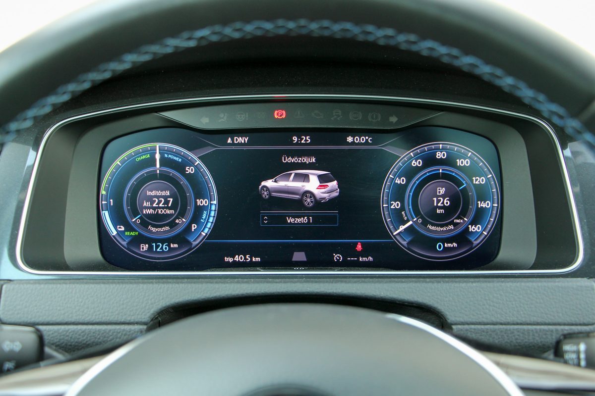 Amúgy mindkét autó igen jól felszerelt, navigáció, elektromos tükrök és ablakok mindkettőhöz járnak, ahogy légkondicionáló is. Ebben a szegmensben utóbbiak már nem kérdésesek. Illetve de, a Renault csak opcióként, az automata, zsebben hordható nyitás-zárást adó Renault-kártyával csomagban adja a hátsó ablakok elektromos mozgatását. A Zoe tehát valamivel kevésbé stafírungozott, mint az e-Golf, viszont olcsóbban extrázható. Nincs továbbá hozzá LED fényszóró, ami az e-Golfhoz alapból jár, s bizony jóval erősebb fényerejű, mint a Zoe halogénje. Van persze ütőkártya a Renault-nál is: klímája alapból hőszivattyús, azaz szerényebb fogyasztású, hatékonyabb, míg a Volkswagen utóbbiért pénzt kér, alapból hagyományos, persze elektromos klímaberendezést ad.