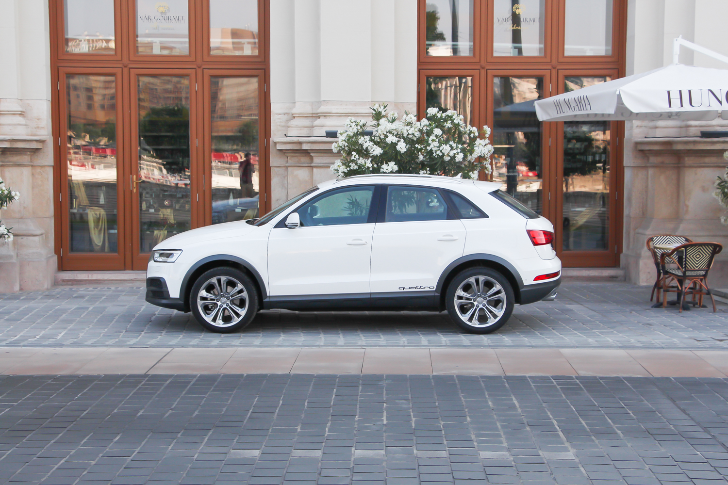 Kun hányas is ez? Persze, a szivar 100-as is nagyon jó kocsi volt, de azok az idők (sajnos) már elmúltak. A világnak másra van szüksége, a korszellem pedig kevésbé kedvez a klasszikus felépítésű autóknak. A szedán, a kombi már nem menő, nem úgy a messziről terepjárónak látszó, magasról a forgalomra tornyosuló SUV-ok. A Q3 ebben a mezőnyben eléggé furcsa kettősséget hordoz. Egyrészt nem olyan bántóan hatalmas, másrészt pont így fehérben, LED fényszórókkal és a legújabb stílusú Audi hűtőmaszkkal már eléggé ott van az úton. A megjelenésre így tulajdonképpen kaphat is egy szép ötöst. Nyilván, aki nem akar feltűnősködni, az inkább szürke Volvót vesz, mintsem fehér Audit, mint ahogy azt A szikla című filmben hallottuk Nicholas Cage-től.
