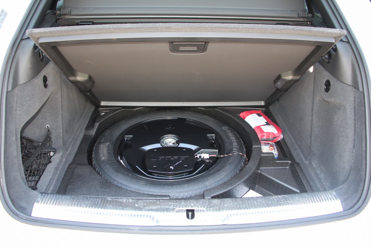 Elsőre nem tűnik nagynak a csomagtér, de van alatta egy rendes méretű, 64 literes tank és benne egy mankókerék is. Ha a valóságban nincs is meg a 460 liter, azért bővíthető