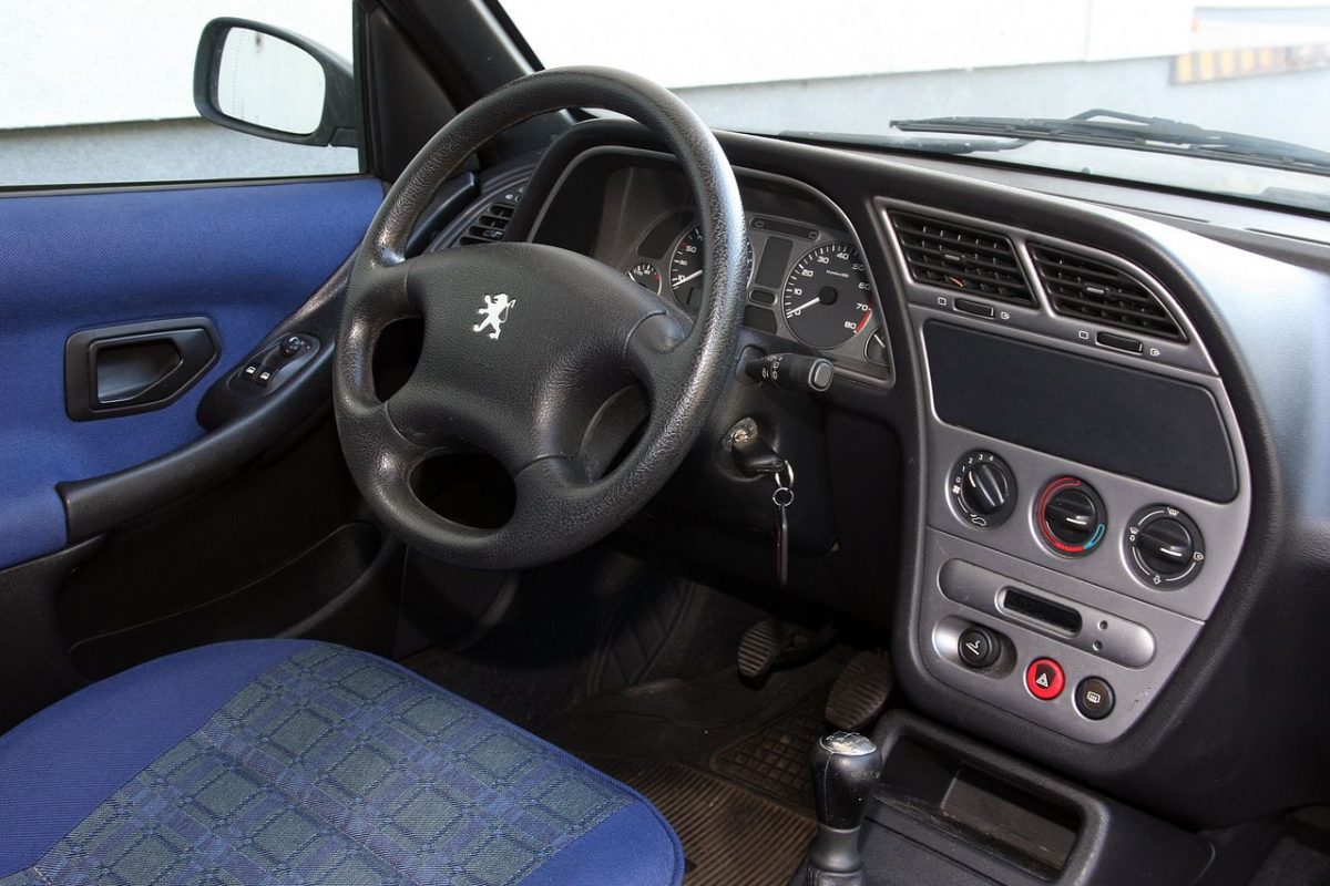 Meglepően jó állapotú a belső. Az íves középkonzol ellenére letisztult és logikusan felépített a műszerfal, a rádió kimaradt, és némely gombokat a '80-as évekből mentett át a Peugeot. Apró zörejek hallhatók, de nincs csatazaj, és nem hullik szét semmi menet közben. Jobb oldalon dupla kesztyűtartó van, mert nincs légzsák az utas előtt