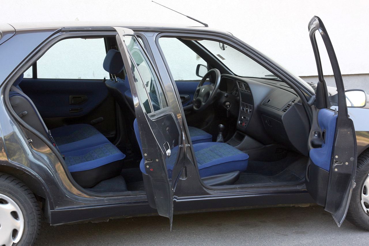 Az utastér sokkal jobb állapotban van, mint a külső. Az összes ülés szakadásmentes, a textillel gazdagon bevont ajtók kárpitja szintén, hibátlan a tetőborítás, repedésmentes a műszerfal, épek az üvegek – itt néhány évet bizony letagadhatna a 306-os. A rádió helyén lévő plasztik lap nem tolvajriasztó trükk: ha ezt a kocsit feltörnék, akkor hoppon maradna a rabló, mert tényleg nincs benne rádió, a vásárláskor ez nem volt mérvadó szempont. Persze, 100 ezer kilométer nem múlik el nyomtalanul, árulkodó jeleket azért találni. A kormányt minden bizonnyal a bal alsó részén szerették fogni, mert itt mutat jelentős kopást, a bőr váltógombon pedig jó eséllyel egy gyűrű hagyott maradandó nyomokat. A lámpakapcsolóról (francia autóknál az indexkaron, és a 306-os még a dudáját is innen hallatja) csak szerényen kezd kopni a jelzés, ezen kívül még az ezüstös középkonzolon fedezhető fel néhány karc, de ennyi. A mobiltelefon-tartók berobbanásakor ész nélkül fúrták szét az autók műszerfalát, ebből az őrületből ez a kocsi - hála az égnek - kimaradt. A felszerelés hozza a ma is elfogadható átlagot: ABS, két első elektromos ablak, elektromosan állítható és fűthető visszapillantó tükör, távirányítós központi zár, vezetőoldali légzsák, magasságában is állítható vezetőülés, ködfényszóró, 60:40 arányban dönthető hátsó üléstámla (felhajtható ülőlappal), és mivel ez egy Husky kivitel, nem hiányzik az első ülésfűtés sem. Sajnos, ez utóbbi tartozék, téli időszakban igencsak kellemes hatása egyik székben ülve sem élvezhető, valószínűleg a fűtőszálak szakadása lehet a hiba oka, a javítás pedig nem olcsó.