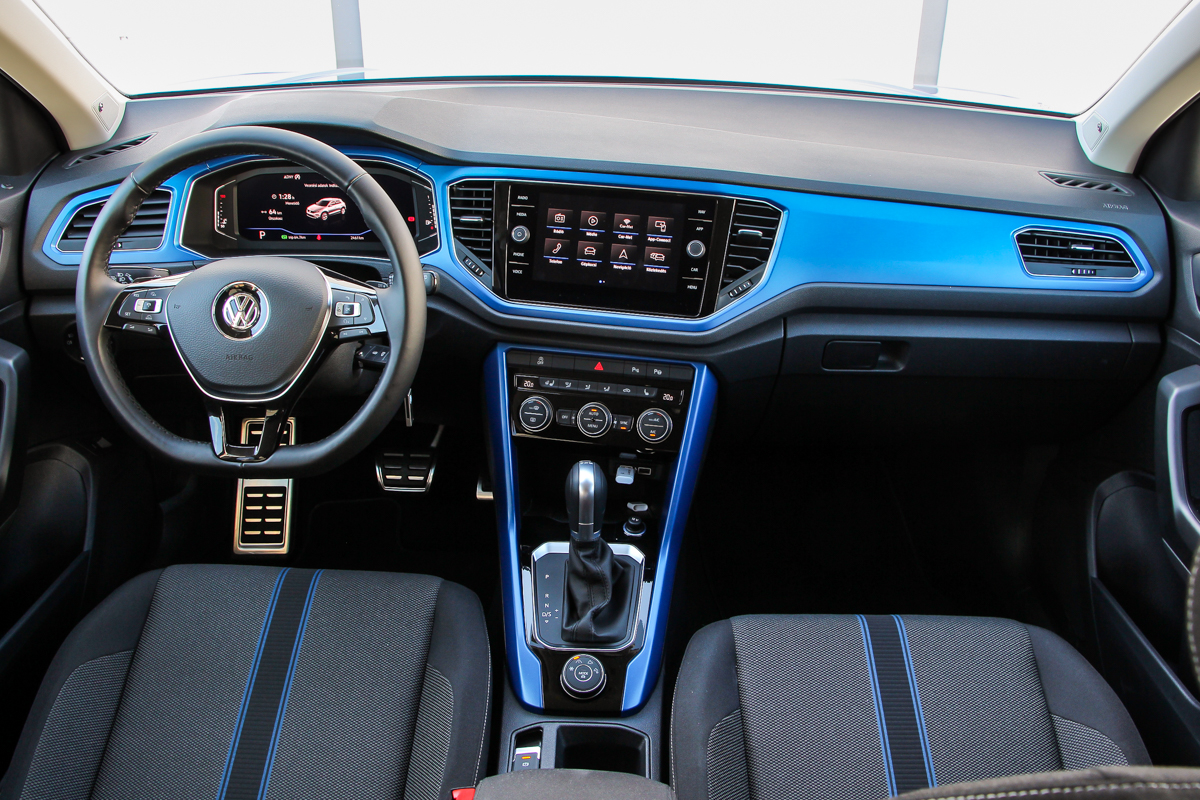 Utasterében számtalan jelét találhatjuk a Polo rokonságnak, főleg persze anyaghasználatban és a szögletes formavilágban. Az ülések is ugyanolyan kényelmesek, hosszú ülőlapúak, jó oldaltartásúak – legalábbis Sport és Style szinten, amivel próbálhattuk – azonban itt suvosabb az üléspozíció és például nagyobb a tologatható könyöklő is. Jó fogású kormány, mögötte ugyanaz a 11,7 colos Active Info Display, azaz digitális műszercsoport dolgozik, ami a Polóban is, és aminek hátránya, hogy egyszerre két képernyőn nem kezeli a navigációt. Ugyanis még egy nagy képernyő dolgozhat odabent, méghozzá az üvegfelületű, tehát ujjlenyomatgyűjtő 8 colos infotainment. Amivel nagyot dobbant, az a 451 literes csomagtér, amit kategóriája legnagyobbjának ígérnek. Ugyan nem emelik ki annyira, mint a Polo esetében, de a T-Rochoz is opció a 300 wattos Beats hangrendszer, valamint a gumírozott induktív töltő.