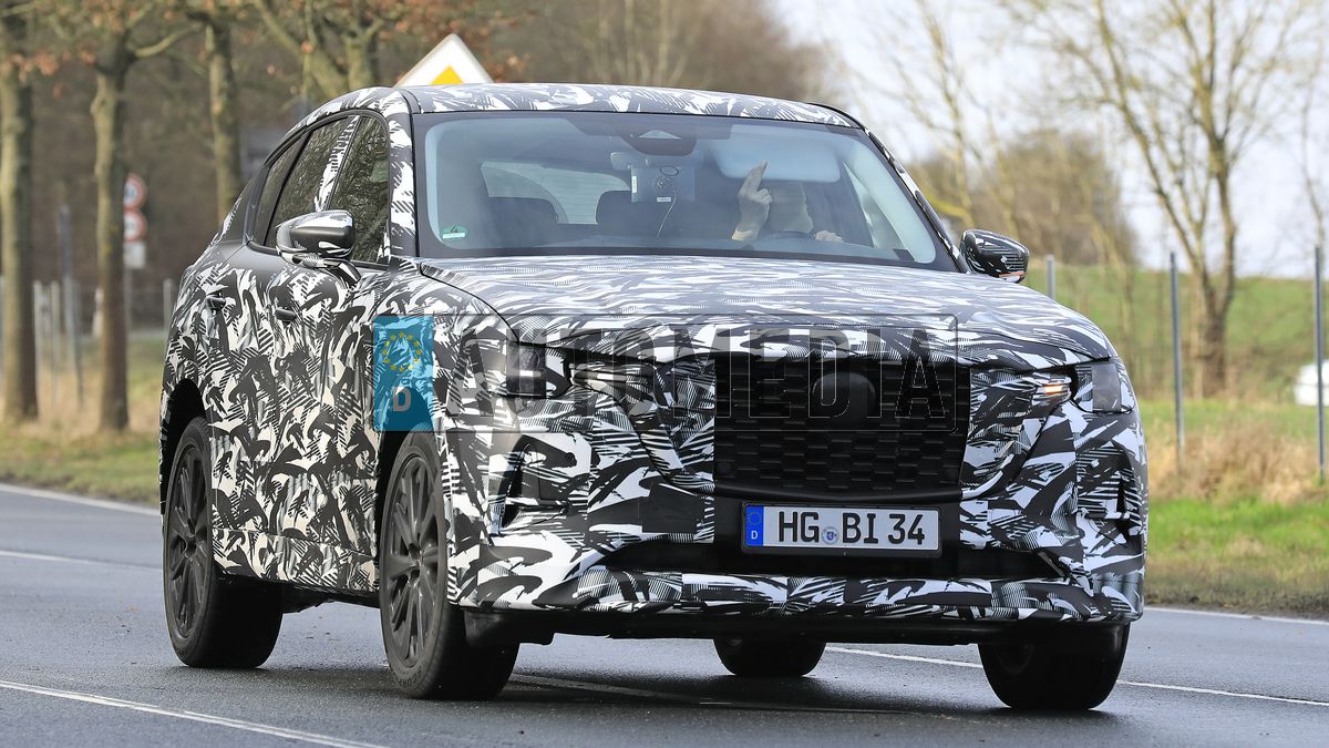 Ugyanakkor az említett modellek közül elsőként, március 8-án debütálva érkező CX-60 is már az említett márkák ellen is indul, s az először mutatott részletfotó után most az Automedia kémfotósának köszönhetően teljes egészében, de vaskos álcafólia alatt láthatjuk az újdonságot. Igaz, a sofőr a nemzetközi jelkommunikáció szerint nem örült a kameráknak. Persze az is lehet, hogy épp csak a napellenzőt igazgatta. A forma kevéssé meglepő módon a Mazdára, leginkább a CX-5 vonásait hozó, közelebbről és álca nélkül március 8-án láthatjuk és mutathatjuk majd.