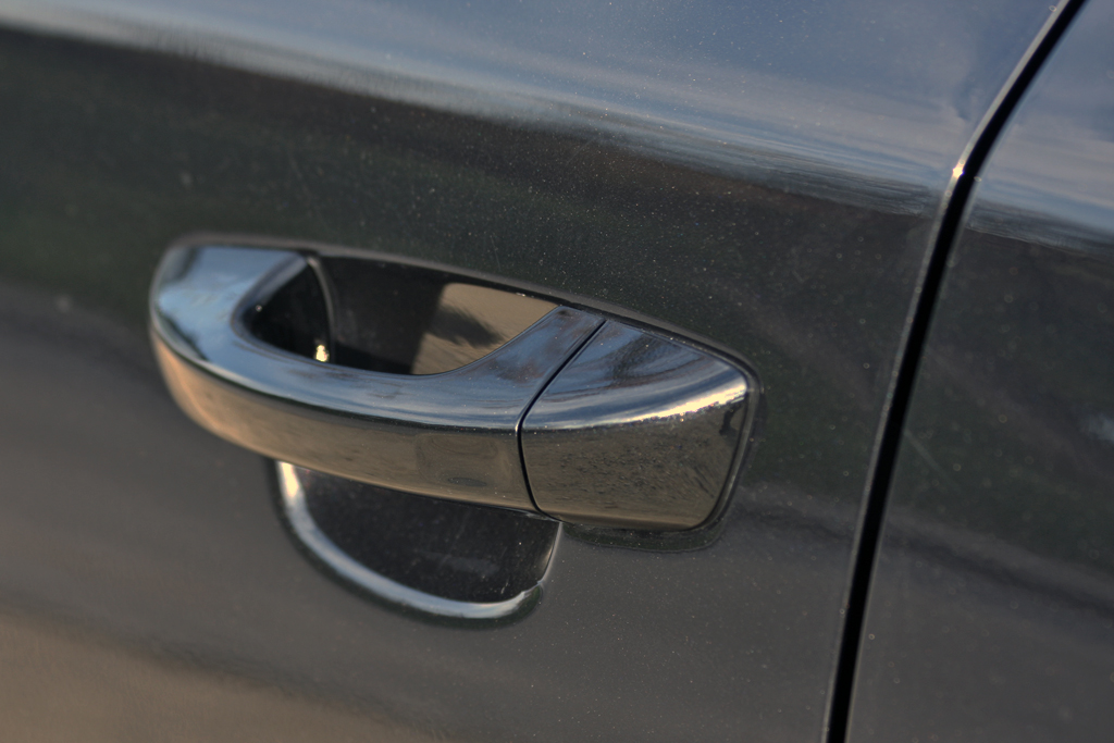 LED-ek elöl-hátul, közte olyan kilincs, hogy érintésre, a kulcs előhalászása nélkül nyit és zár. Alufelni is járt volna, de a téli kerekekkel együtt dísztárcsát kapott a tesztautó